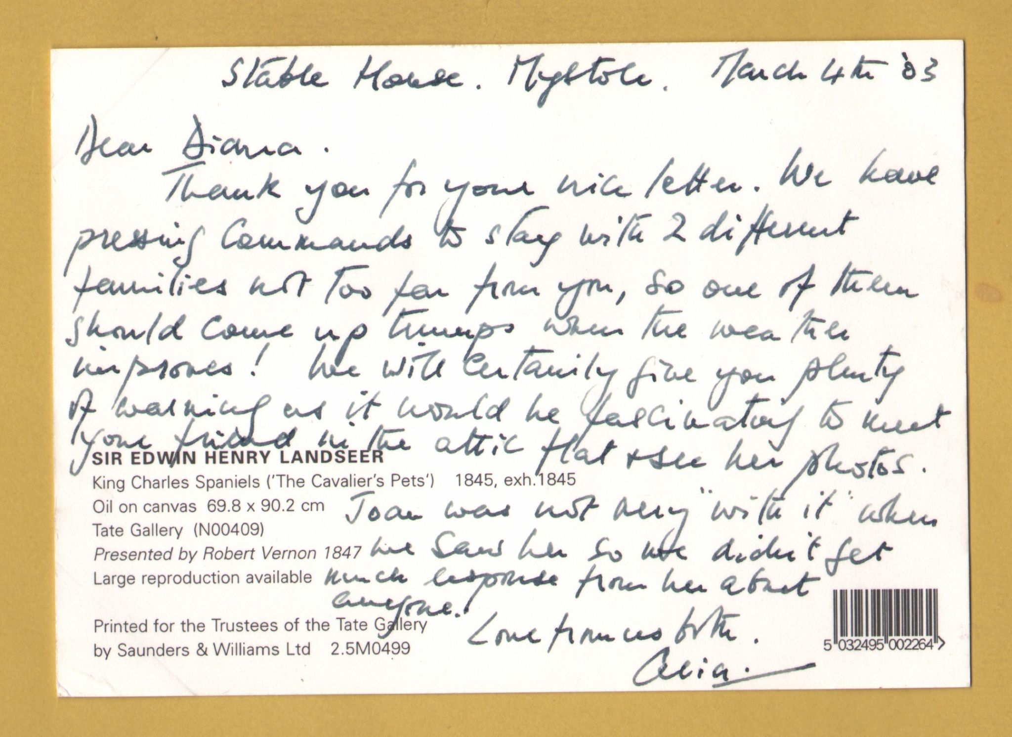`King Charles Spaniels (The Cavaliers Pets) by Sir Edwin Henry Landseer` - Postally Unused (although there is a message to the rear) - Tate Gallery Postcard. `King Charles Spaniels (The Cavaliers Pets) by Sir Edwin Henry Landseer` - Postally Unused (although there is a message to the rear) - Tate Gallery Postcard.