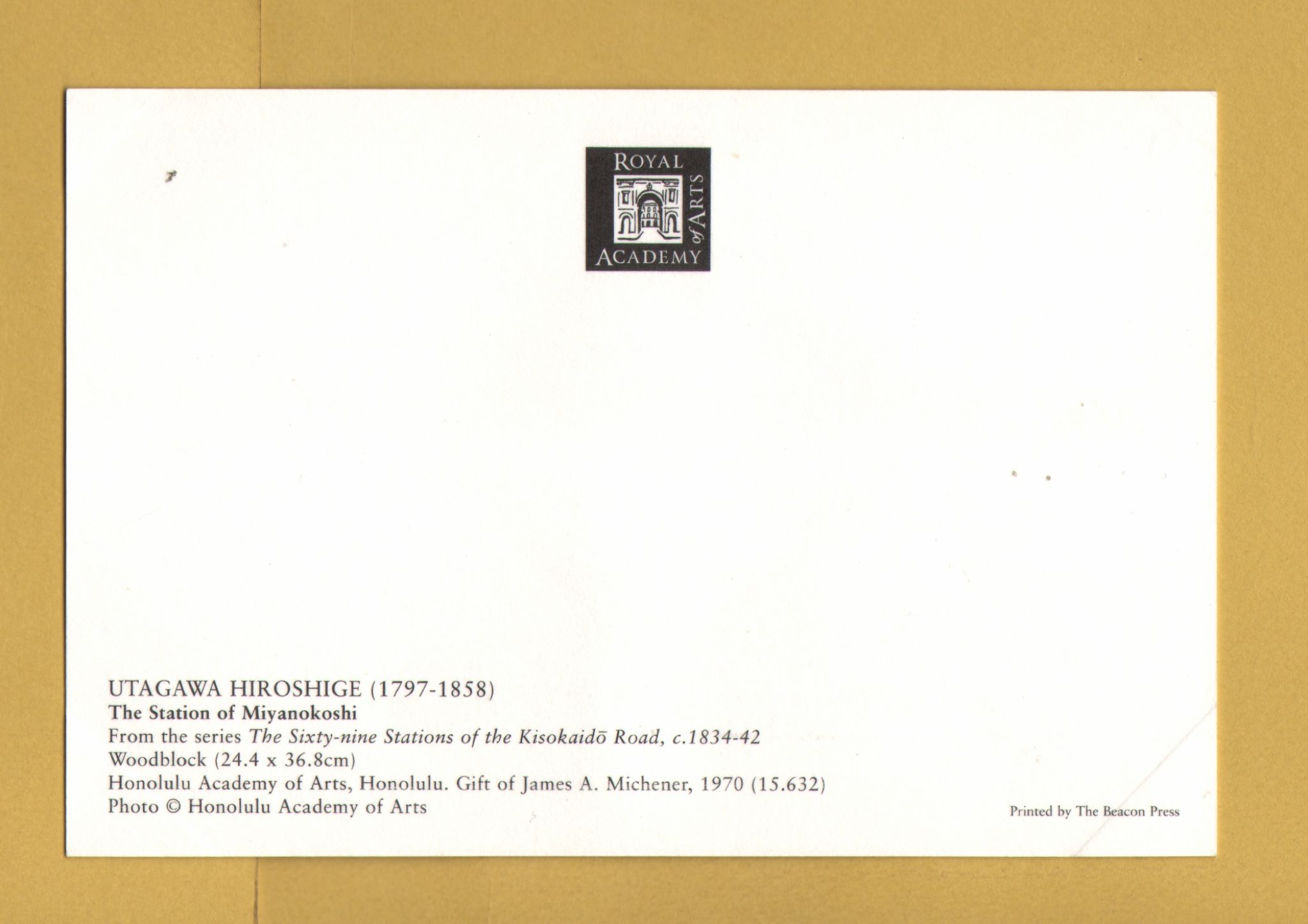 Tags: The Station of Miyanokoshi, Utagawa Hiroshige:Unused, Royal Academy of Arts Postcard.