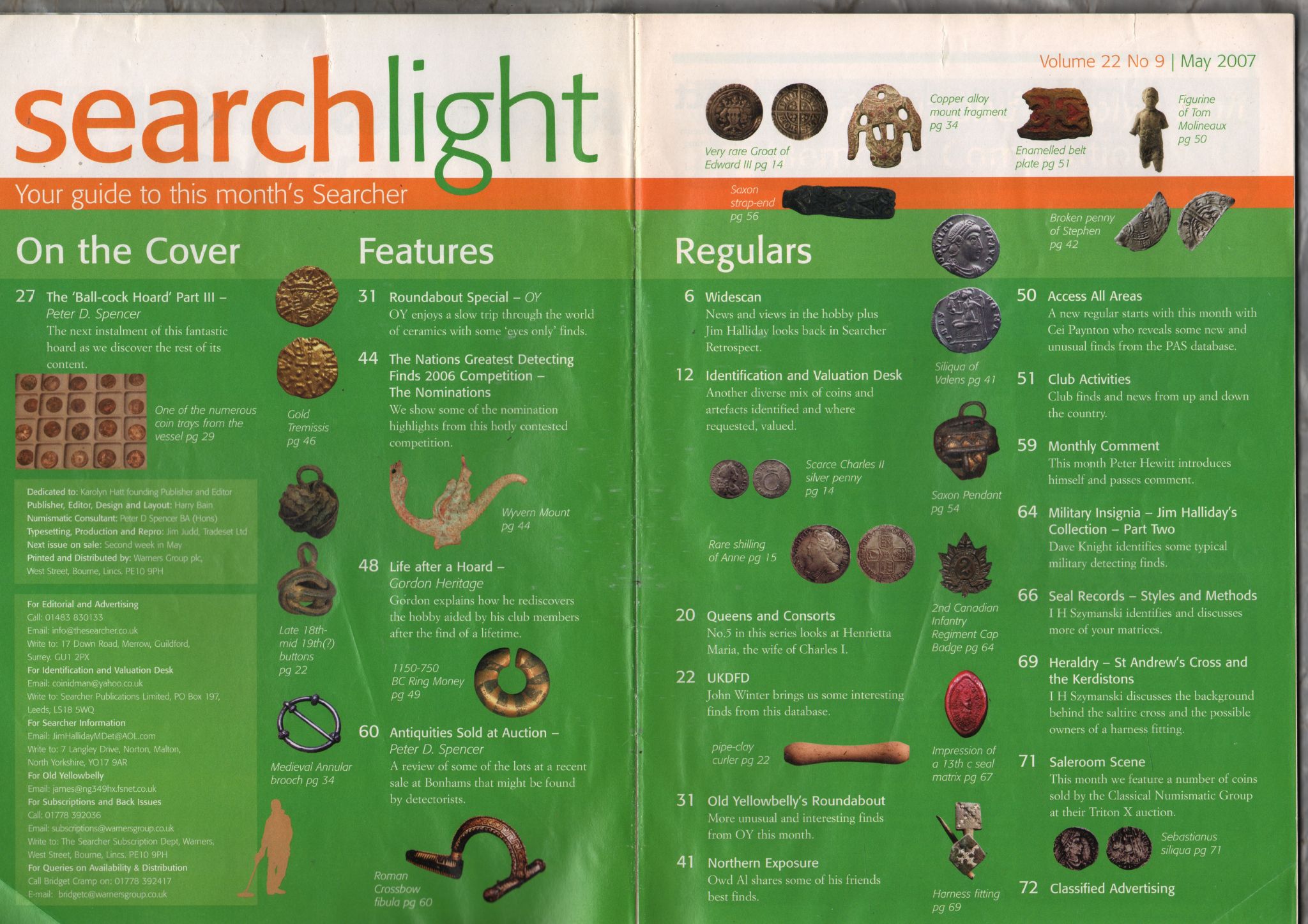 The Searchers Magazine - May 2007 - Vol.22 No.9 - `Hoard: Gold Bracelet & Previously Unknown Coin!` - Searcher Publications