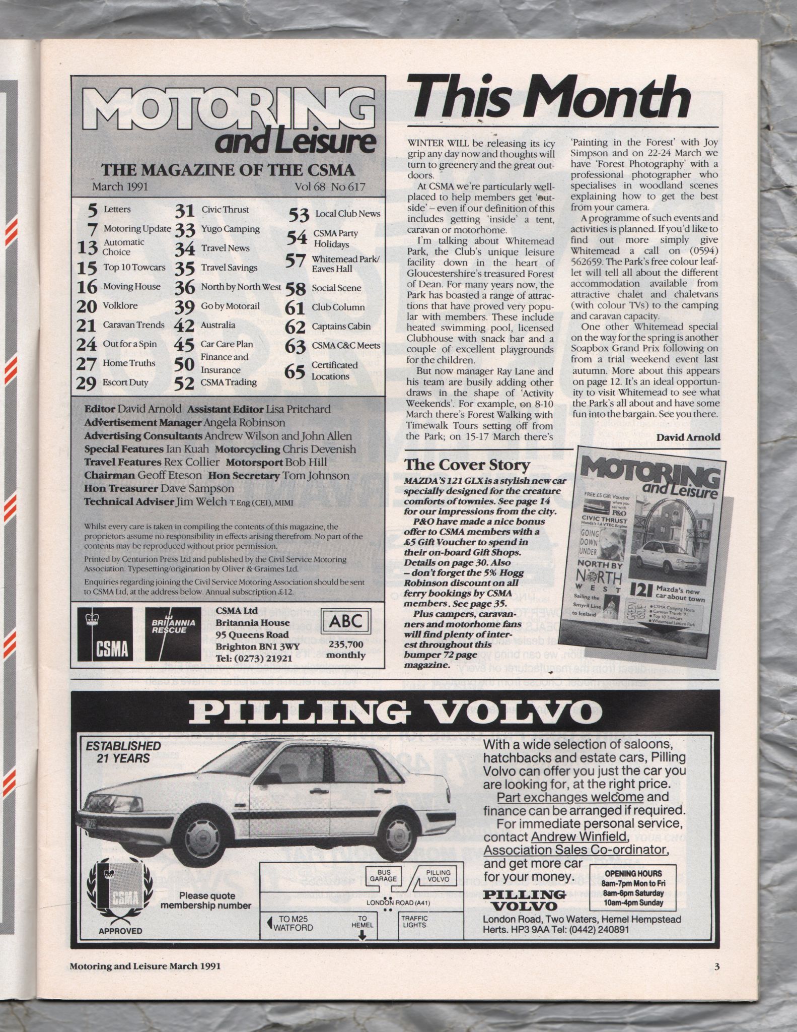 Motoring & Leisure - March 1991 - `Civic Thrust` - Civil Service Motoring Association Ltd