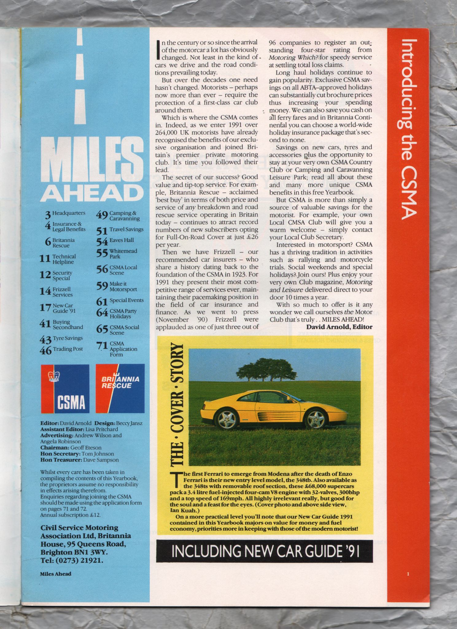 Motoring & Leisure - Miles Ahead - 1991 - `New Car Guide `91` - Civil Service Motoring Association Ltd