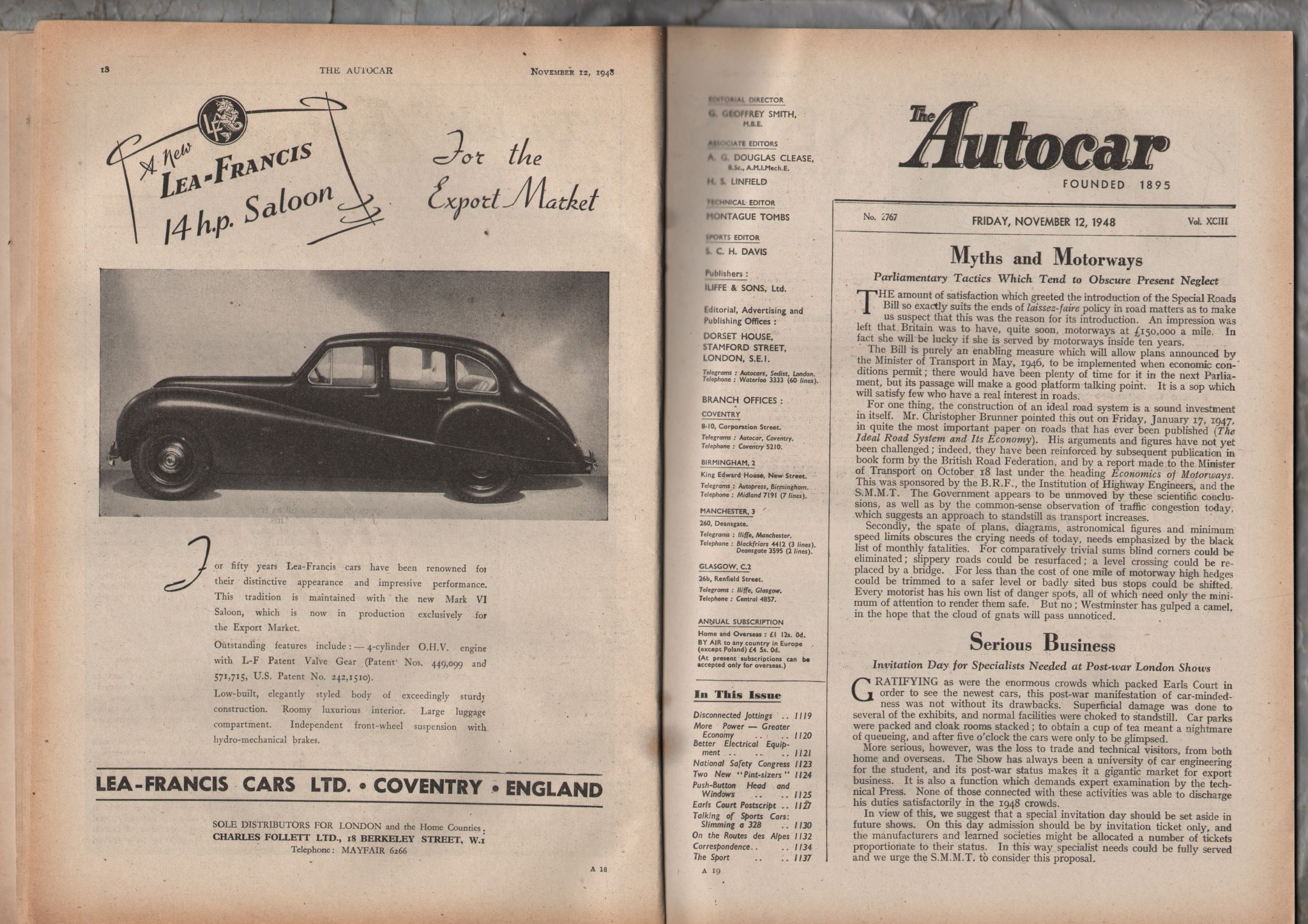 Tags: Autocar Magazine, Vol.93 No.2767, Nov 12 1948:Talking of Sports Cars:Slimming a 328, Iliffe & Sons Ltd