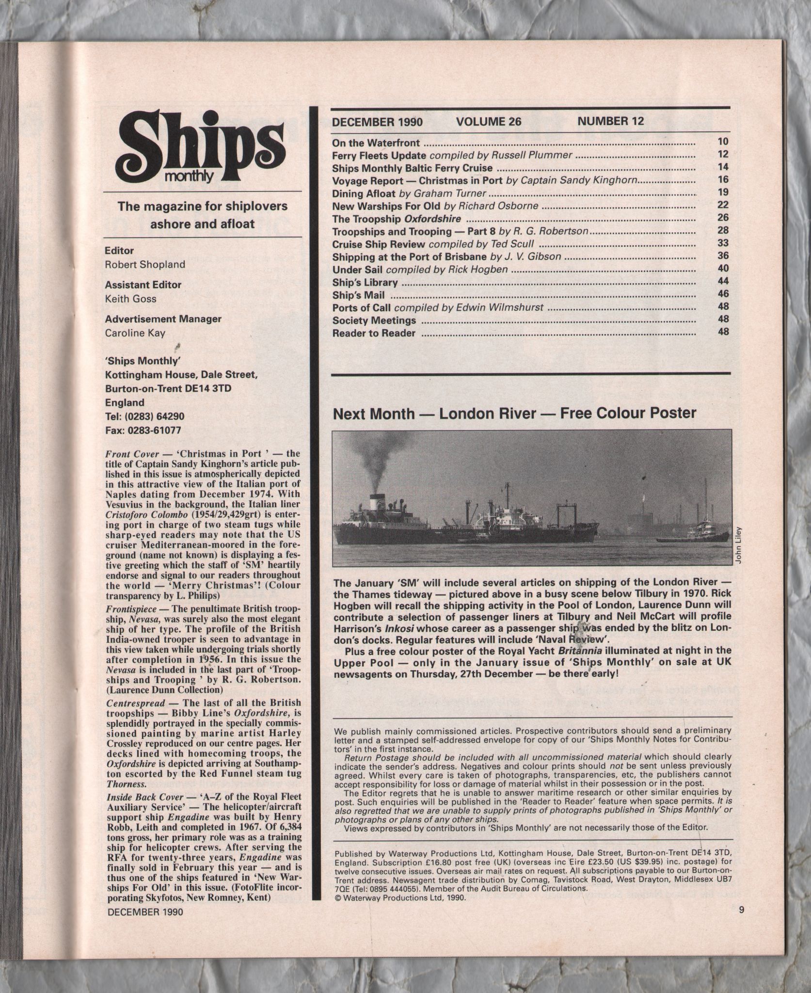 Ships Monthly - December 1990 - Vol 25 - No.12 - `Christmas in Port` - Waterway Productions Limited