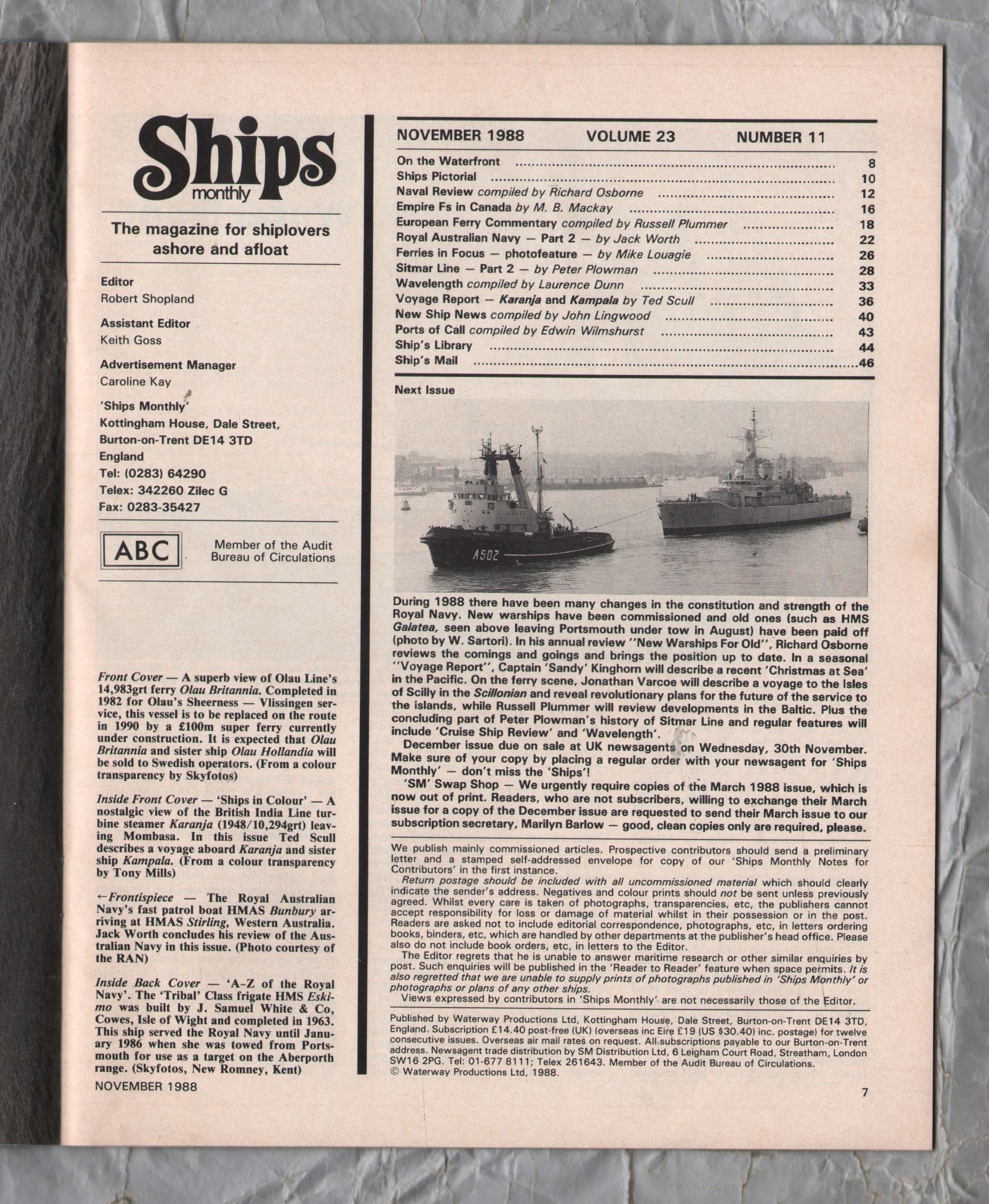 Tags: Ships Monthly, Nov, 1988, Vol 23, No.11, Ferries in Colour, Waterway Productions