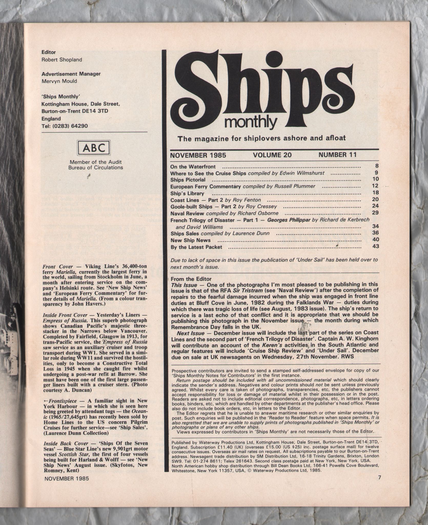 Tags: Ships Monthly, Nov, 1985, Vol 20, No.11, Goole-built Ships, Waterway Productions