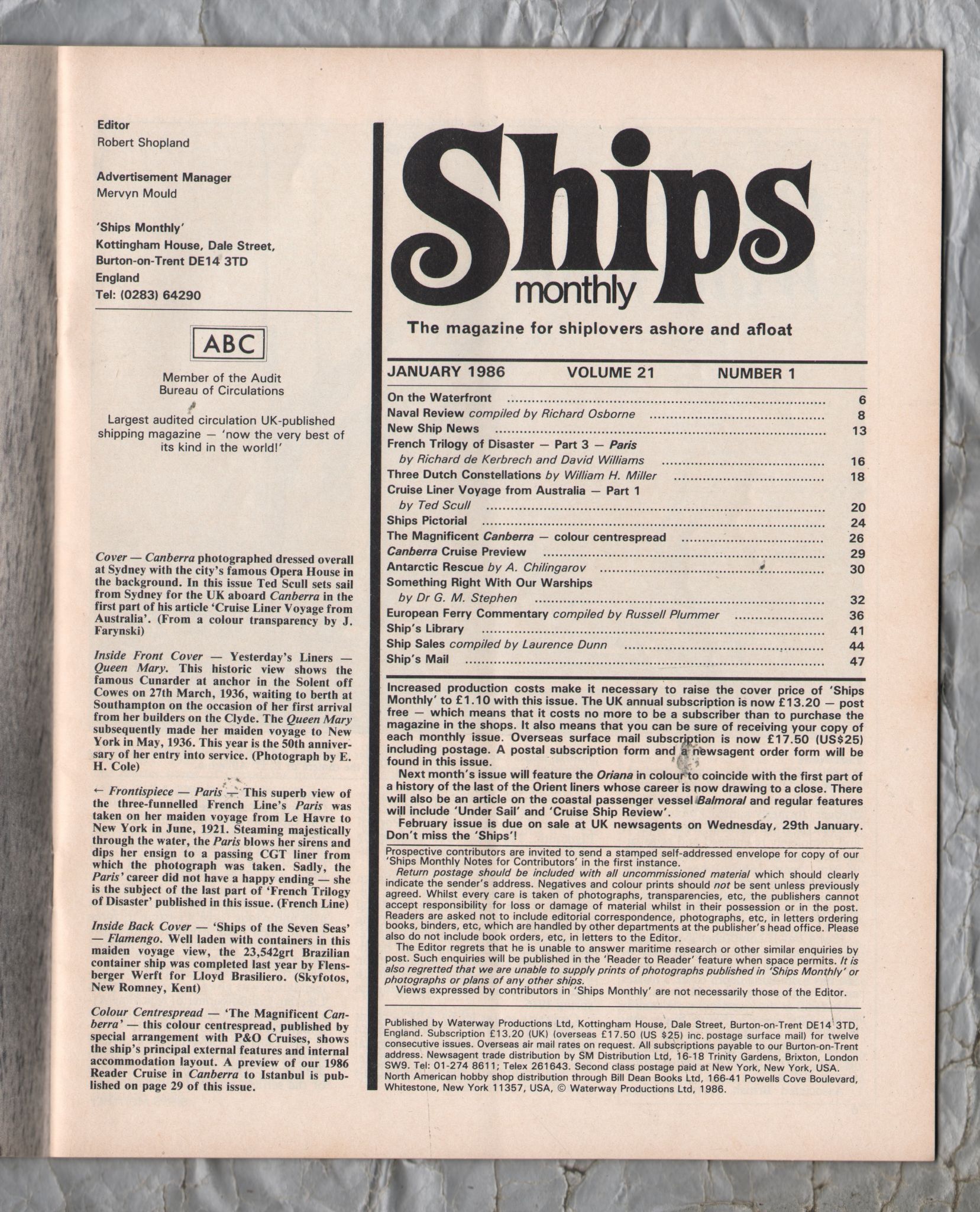 Tags: Ships Monthly, Jan, 1986, Vol 21, No.1, Ships Pictorial, Waterway Productions