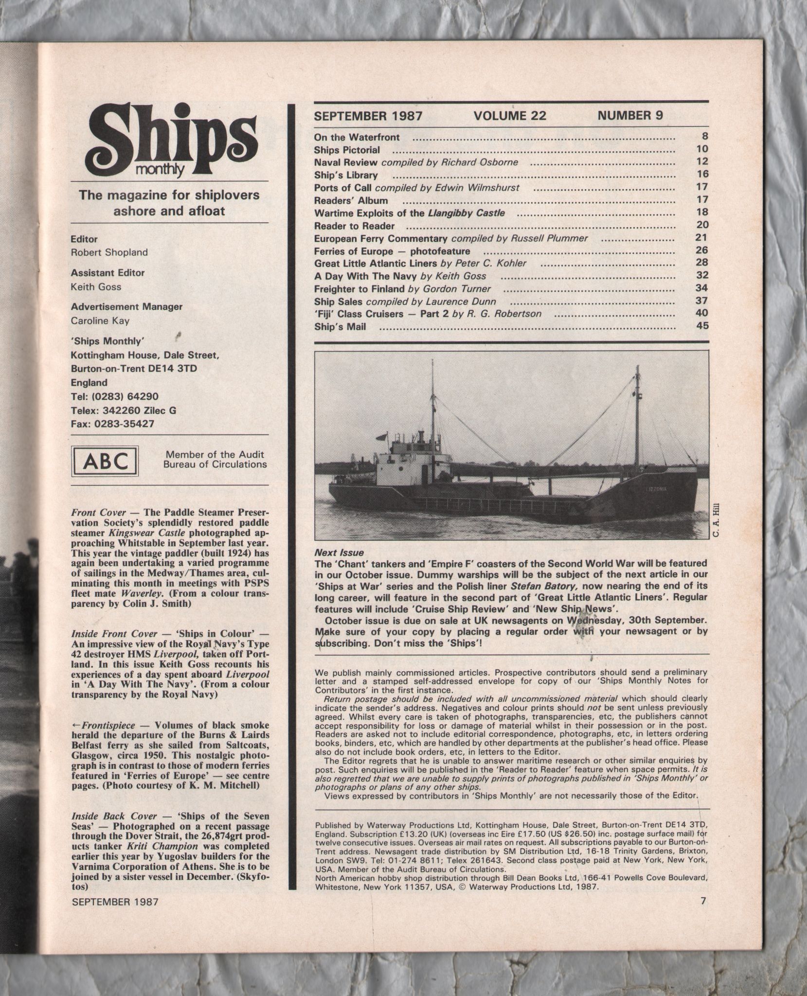 Tags: Ships Monthly, Sept, 1987, Vol 22, No.9:Freighter to Finland, Waterway Productions