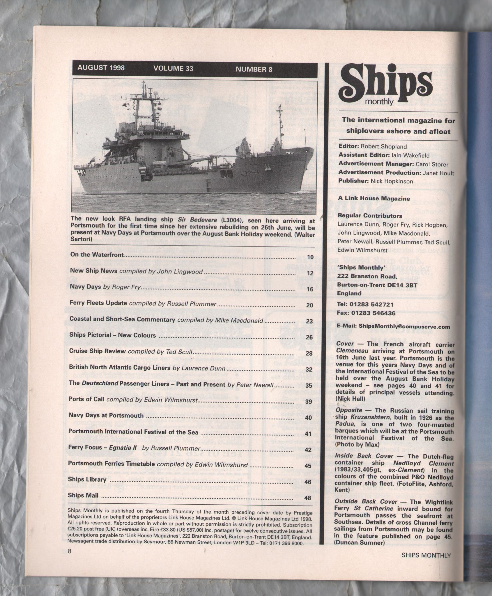 Ships Monthly - August 1998 - Vol 33 - No.8 - `Navy Days` - Prestige Magazine