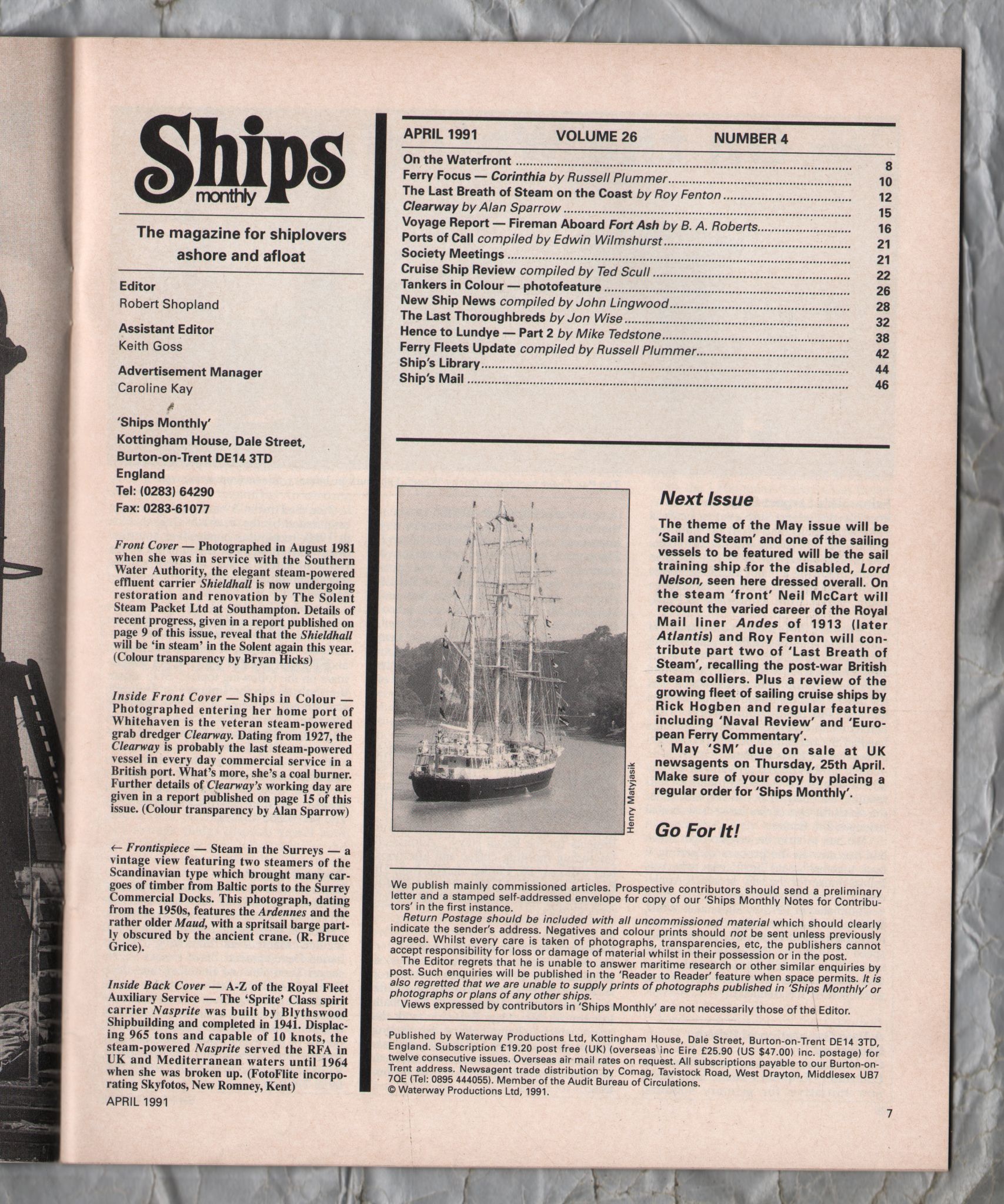 Ships Monthly - April 1991 - Vol 26 - No.4 - `Tankers in Colour` - Waterway Productions Limited Ships Monthly - April 1991 - Vol 26 - No.4 - `Tankers in Colour` - Waterway Productions Limited Ships Monthly - April 1991 - Vol 26 - No.4 - `Tankers in Colour` - Waterway Productions Limited