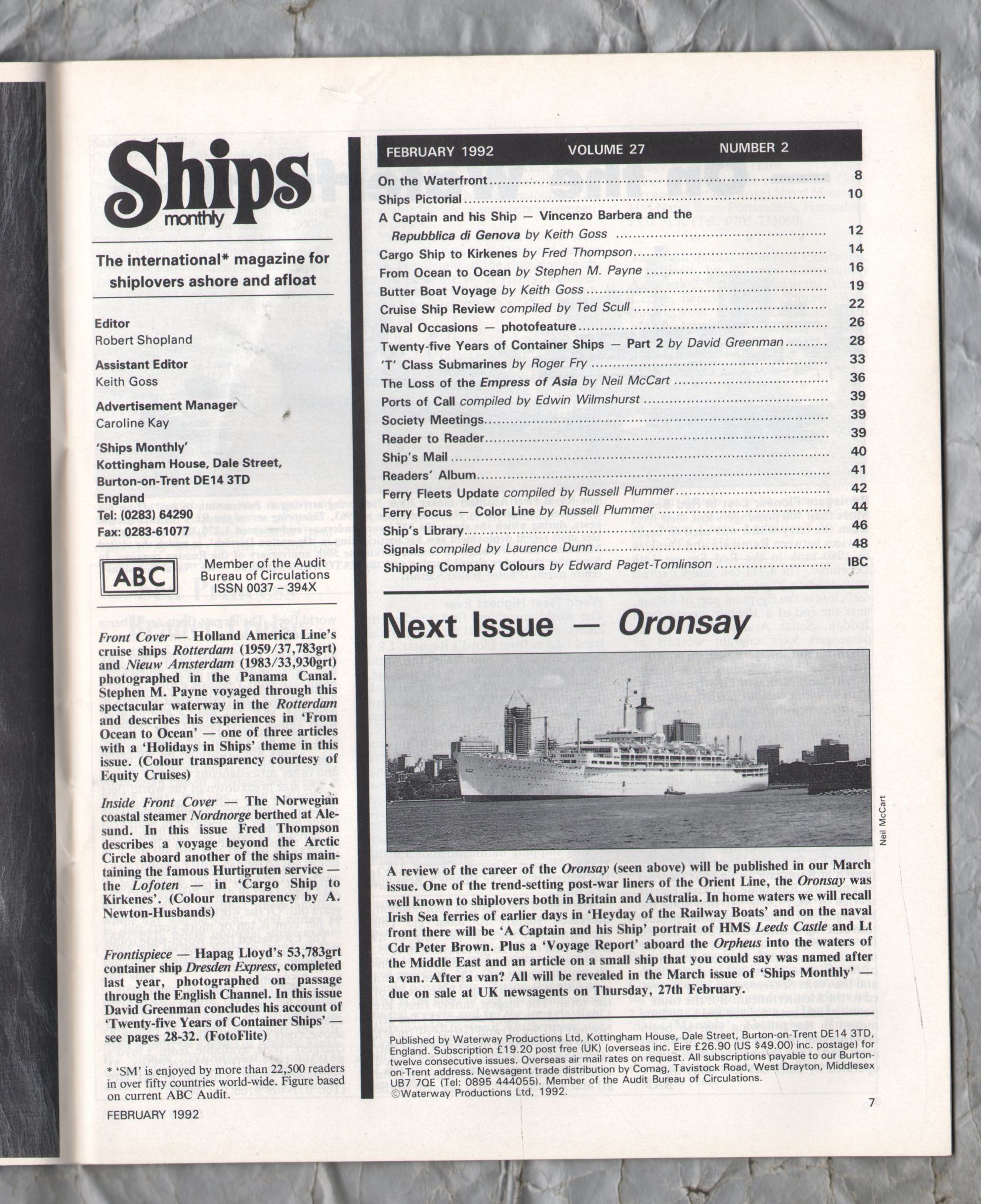 Ships Monthly - February 1992 - Vol 27 - No.2 - `Panama Canal Cruise` - Waterway Productions Limited