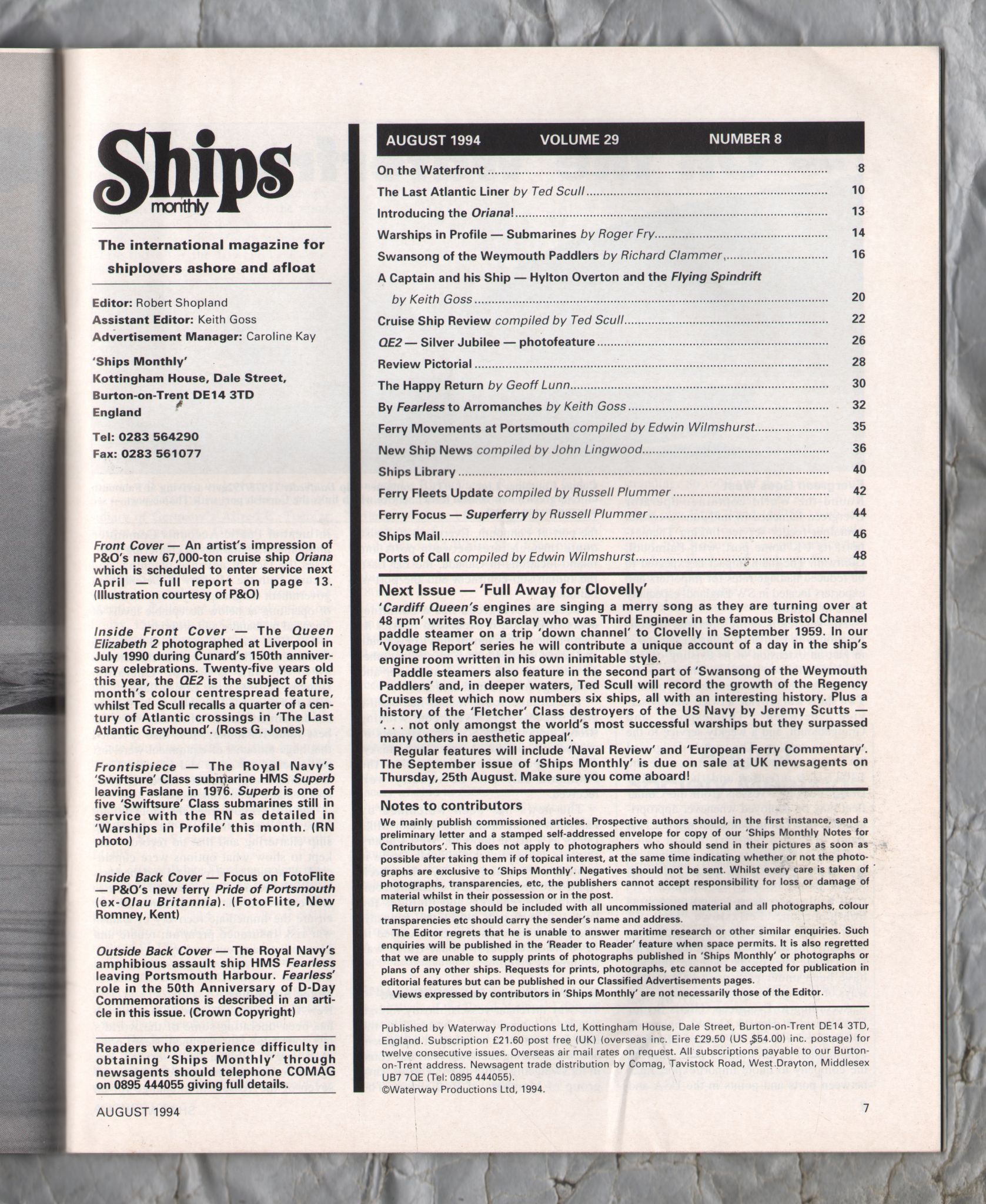 Ships Monthly - August 1994 - Vol 29 - No.8 - `D-Day Review Pictorial` - Waterway Productions Limited