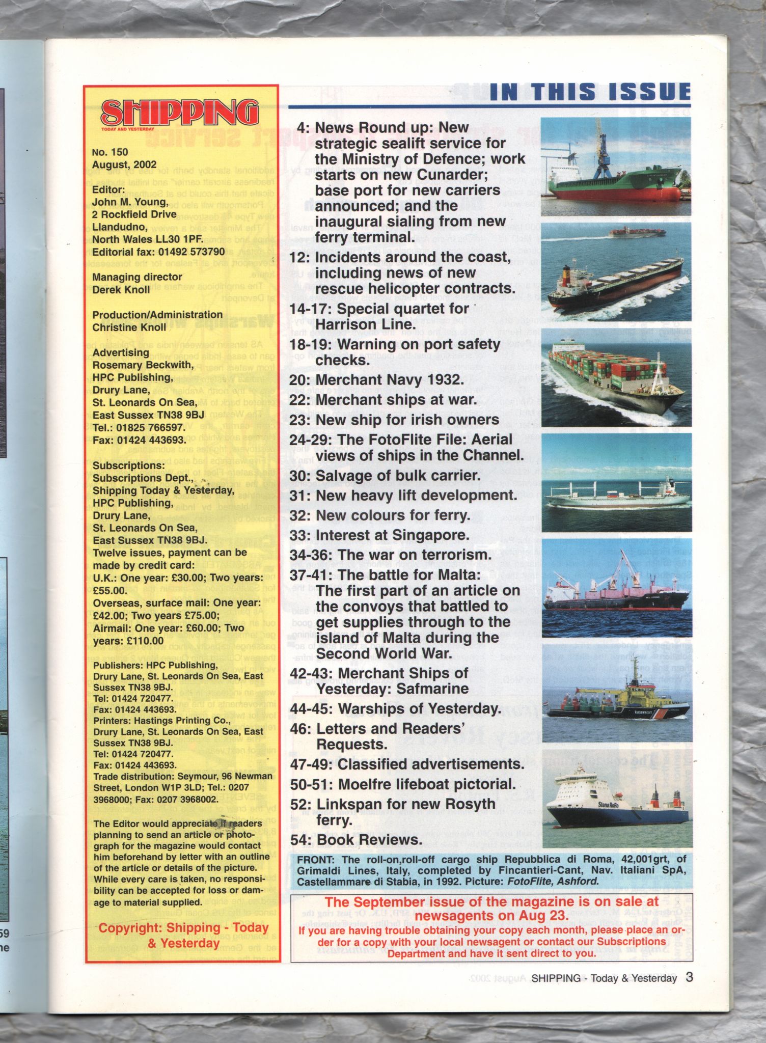 Shipping - Today and Yesterday - August 2002 - No.150 - `Malta Convoys` - HPC Publishing