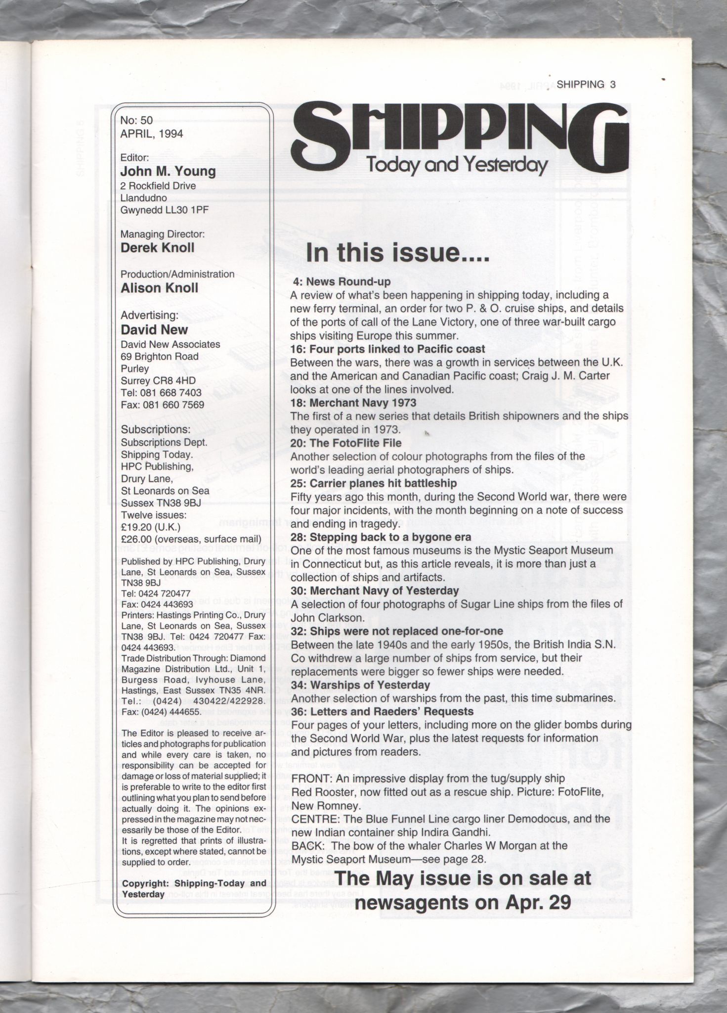 Shipping - Today and Yesterday - April 1994 - No.50 - `Carrier Raid on the Tirpitz` - HPC Publishing