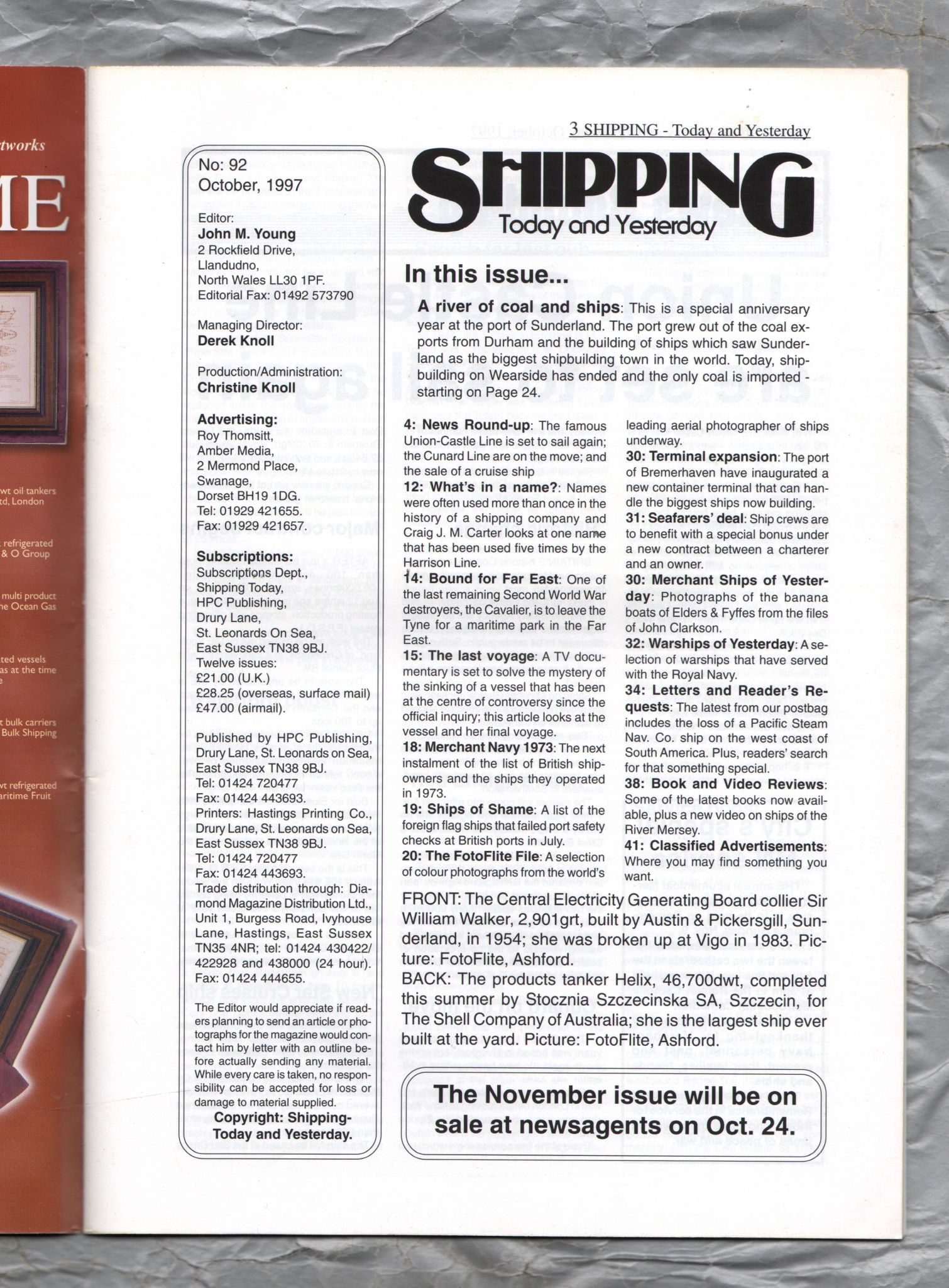Shipping - Today and Yesterday - October 1997 - No.92 - `Sunderland: Built on Coal and Ships` - HPC Publishing