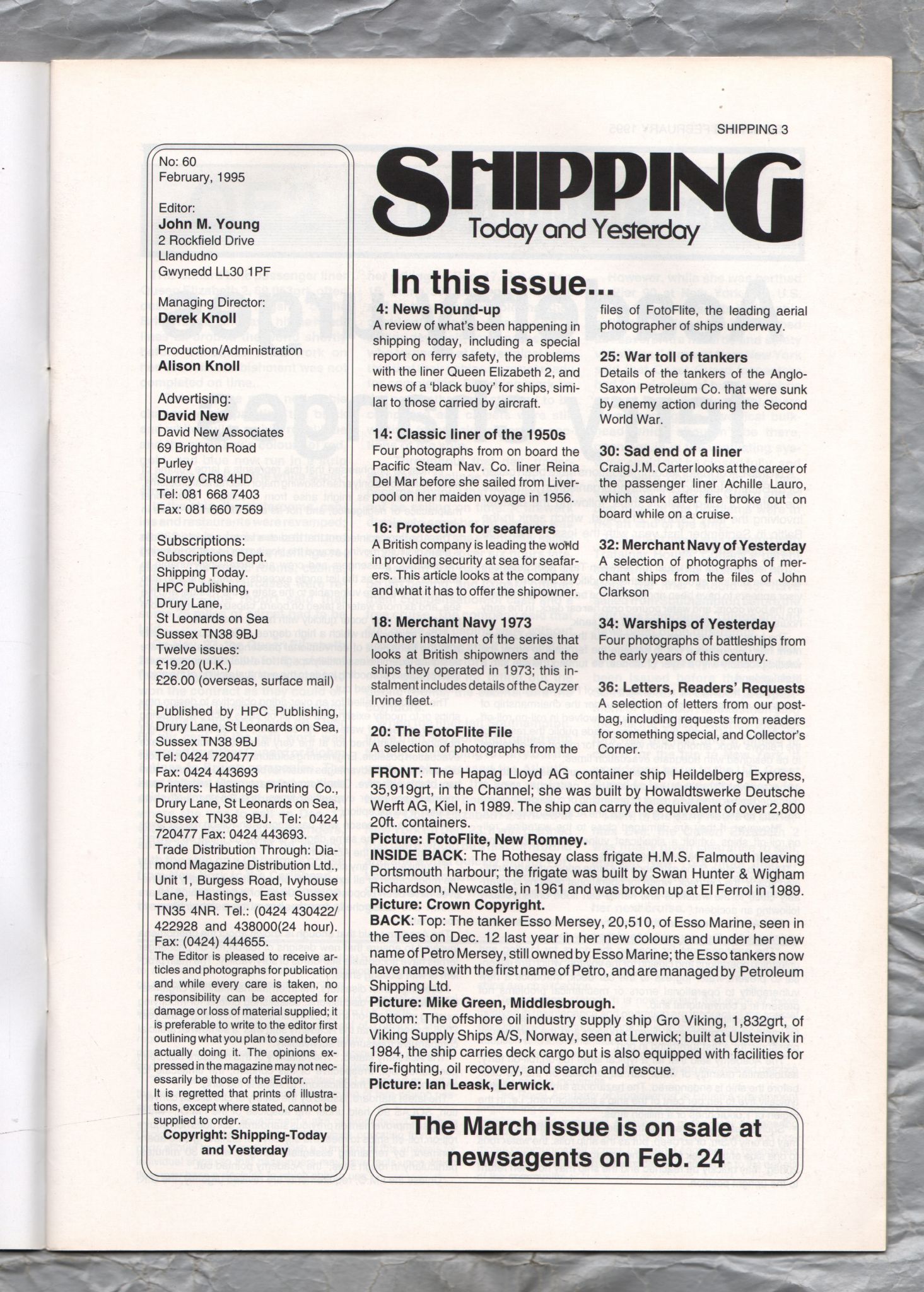 Shipping - Today and Yesterday - February 1995 - No.60 - `Tankers` War` - HPC Publishing
