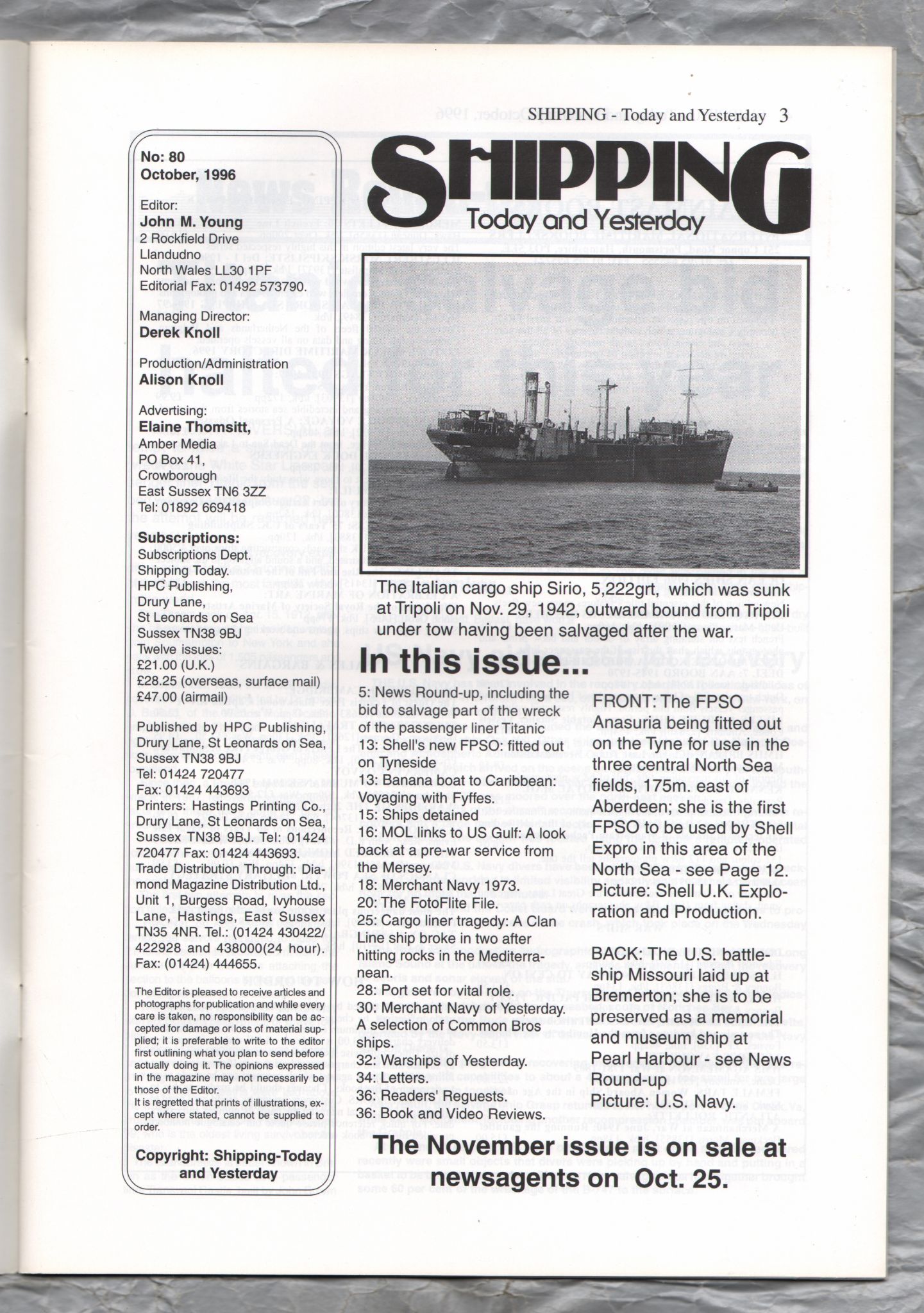 Shipping - Today and Yesterday - October 1996 - No.80 - `Clan Line Ship Disaster` - HPC Publishing