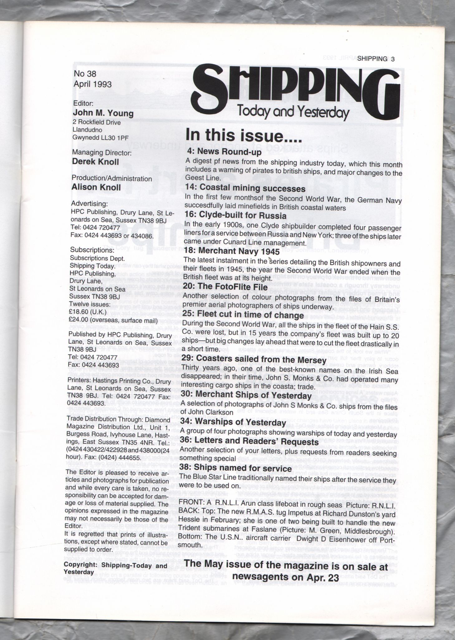 Shipping - Today and Yesterday - April 1993 - No.38 - `Pirate Alert For British Ships` - HPC Publishing