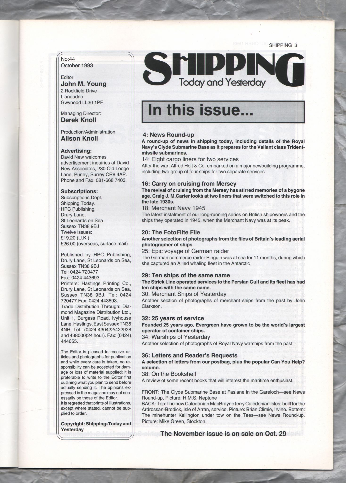 Shipping - Today and Yesterday - October 1993 - No.44 - `Epic Voyage of German Raider` - HPC Publishing