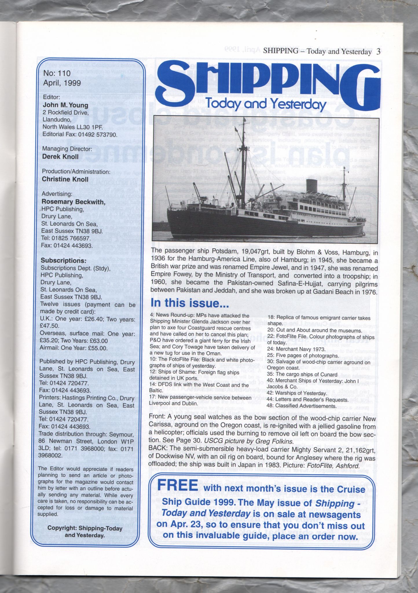 Shipping - Today and Yesterday - April 1999 - No.110 - `Danish Link to West Country` - HPC Publishing