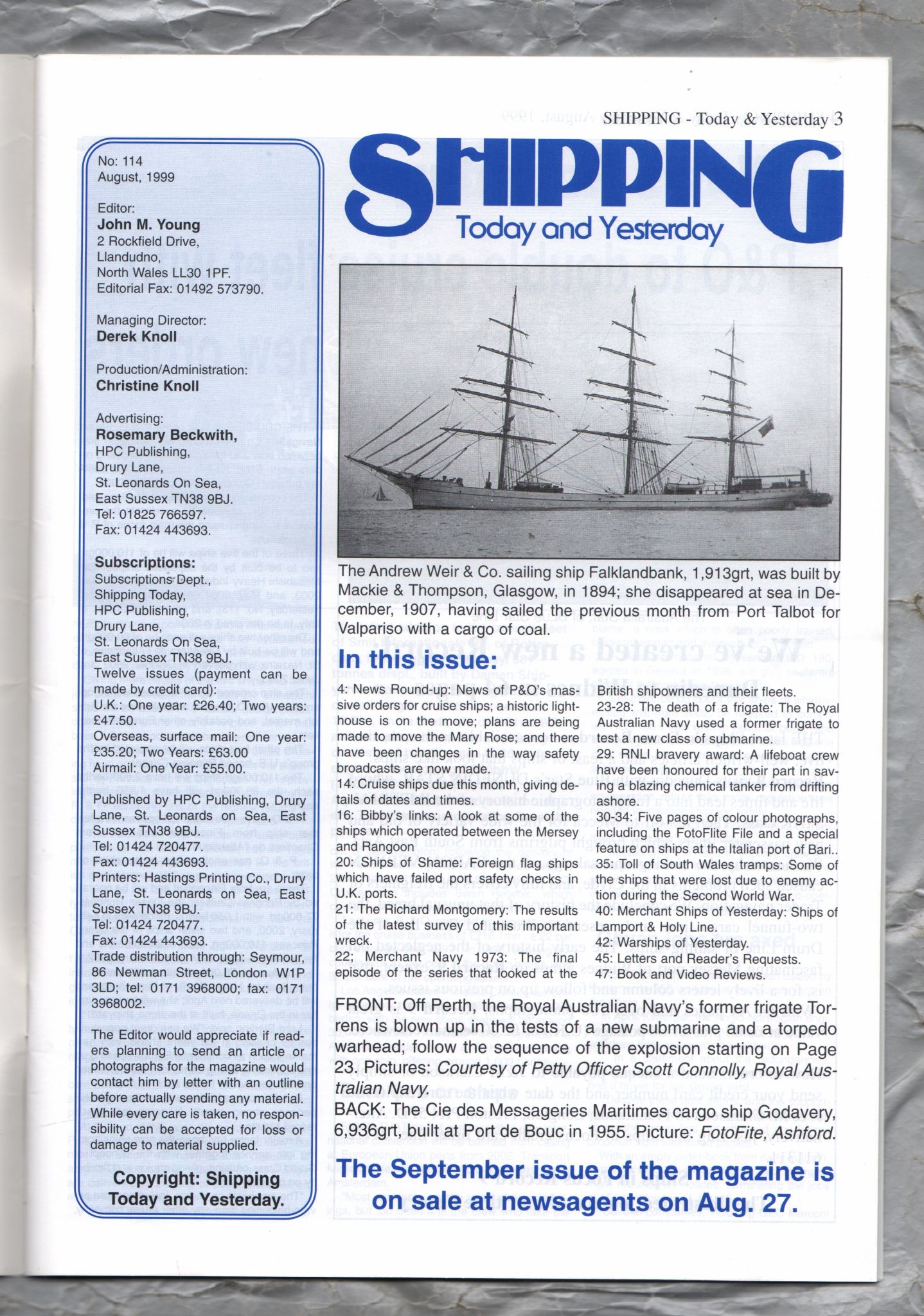 Shipping - Today and Yesterday - August 1999 - No.114 - `Death of a Frigate` - HPC Publishing