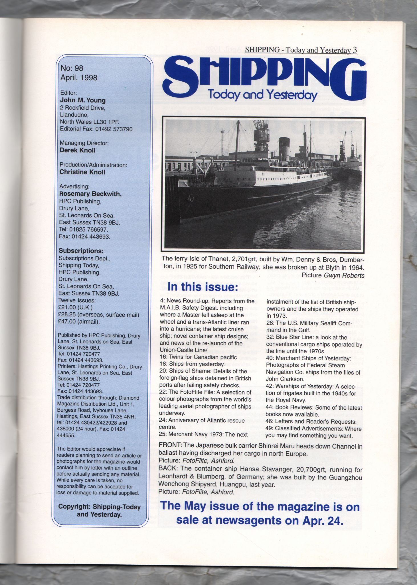 Shipping - Today and Yesterday - April 1998 - No.98 - `The Ships of Blue Star Line` - HPC Publishing