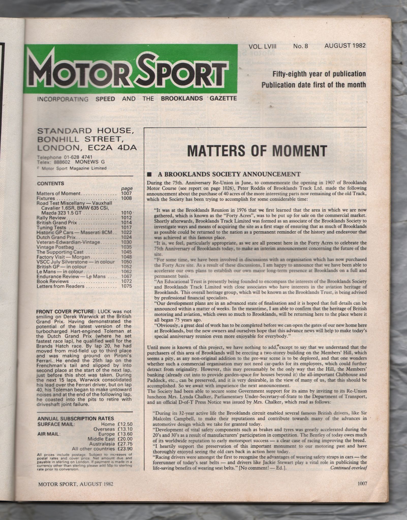 Tags: MotorSport, Vol.LVIII No.8, Aug 1982:Le Mans-in Colour, Motor Sport Magazine