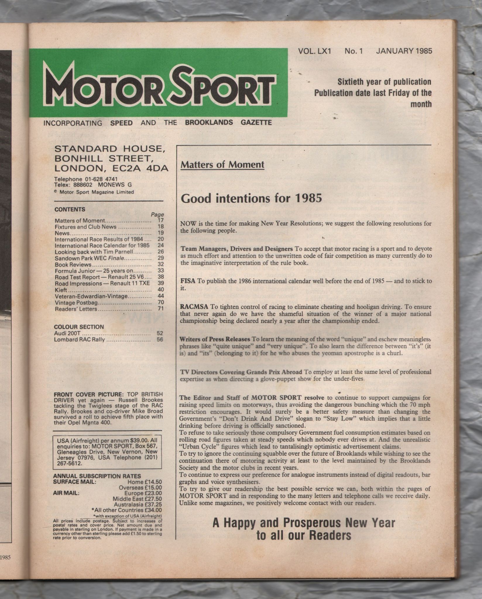 MotorSport - Vol.LXI No.1 - January 1985 - `Lombard RAC Rally` - Motor Sport Magazine Limited