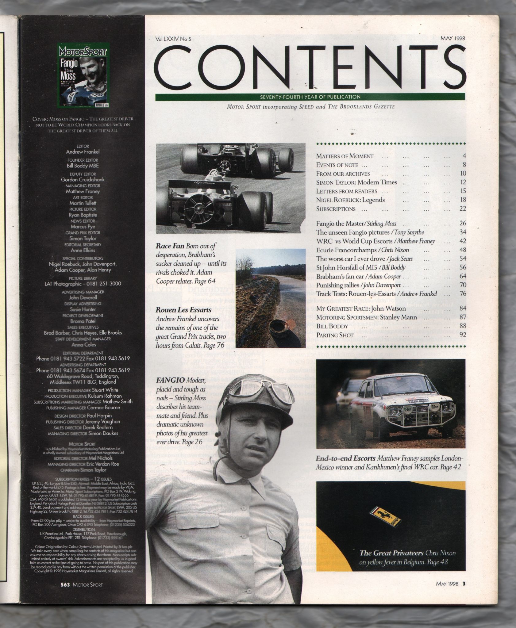 Tags: MotorSport, Vol.LXXIV No.5, May 1998:Fangio the Master, Haymarket Motoring Publications