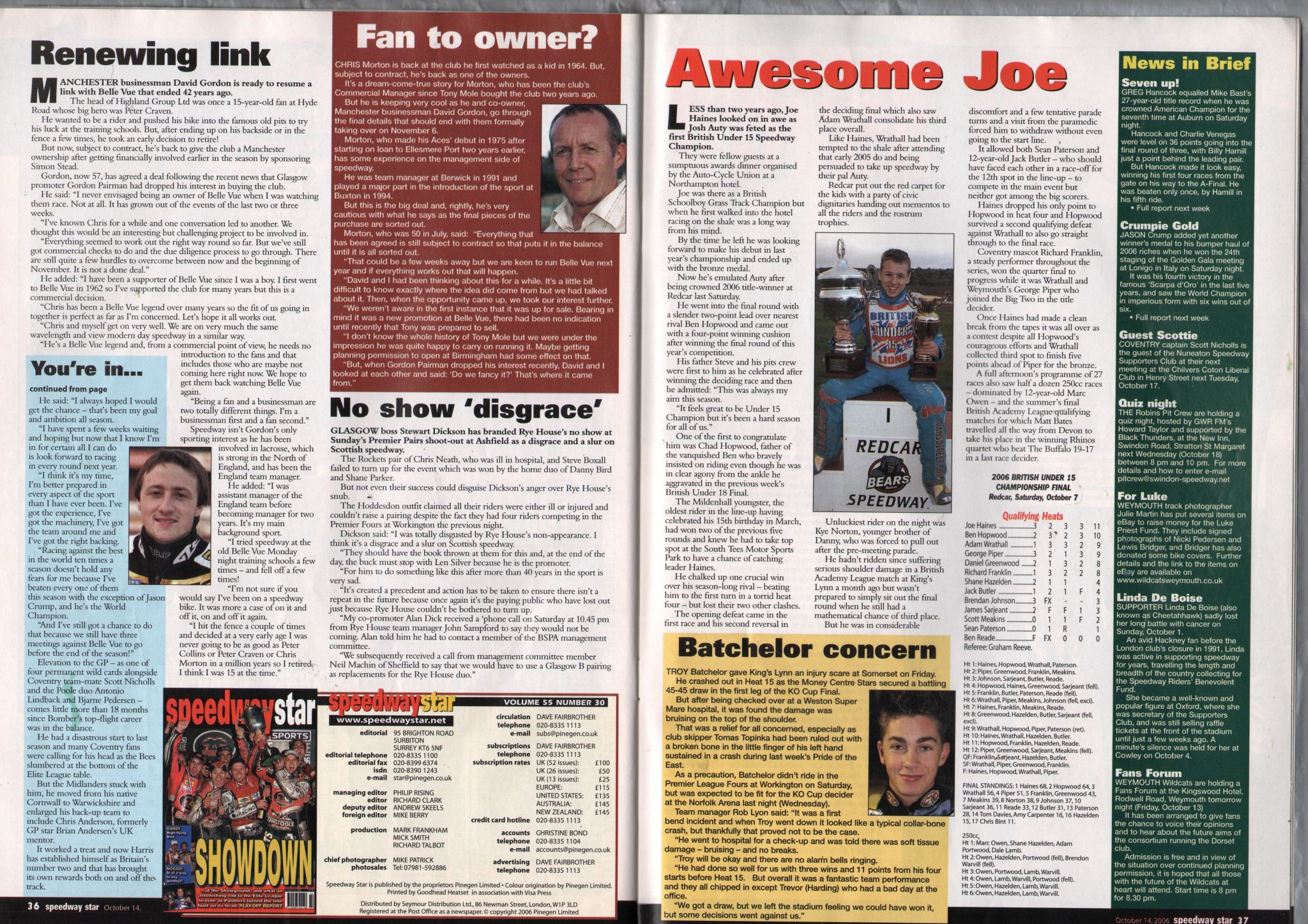 Speedwaystar - Vol.55 No.30 - October 14 2006 - `Showdown` - Published by Pinegen Ltd Speedwaystar - Vol.55 No.30 - October 14 2006 - `Showdown` - Published by Pinegen Ltd Speedwaystar - Vol.55 No.30 - October 14 2006 - `Showdown` - Published by Pinegen Ltd