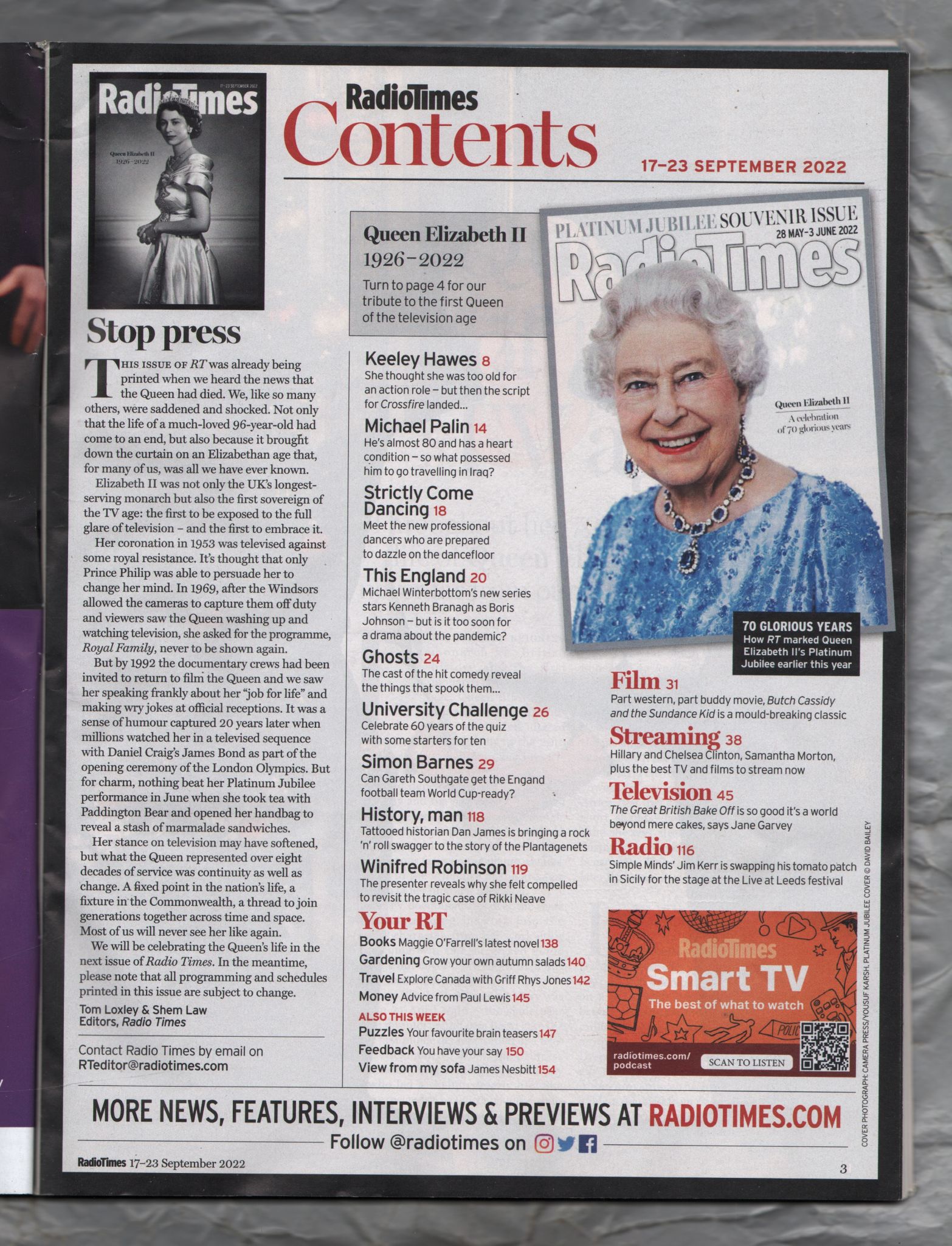 Tags: Radio Times, Wales Edition, 17-23 Sept 2022, Queen Elizabeth ll, 1926-2022, BBC Magazines
