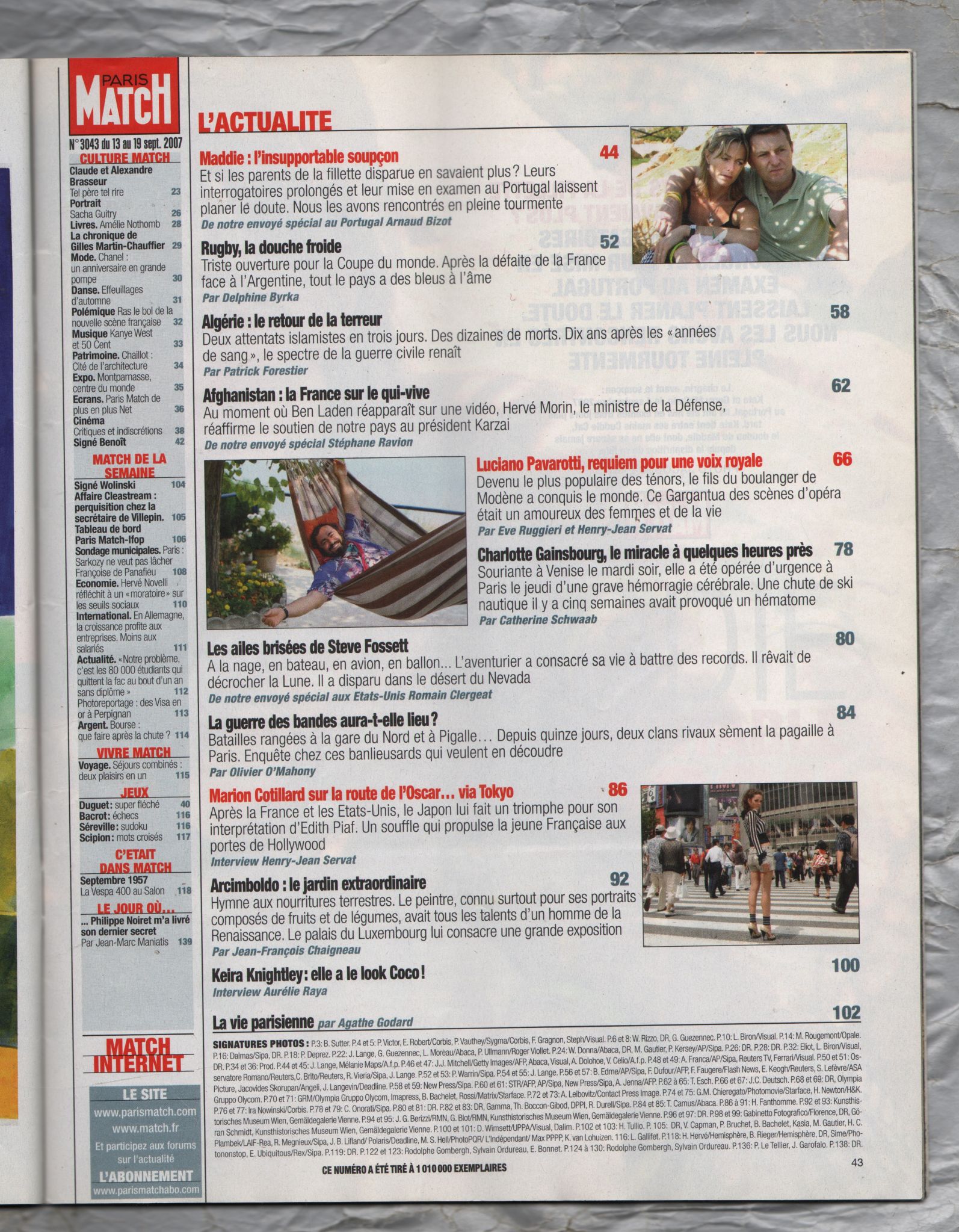 Paris Match (French Language) - 13th/19th September 2007 - Number 3043 - Export Copy - `Maddie: l`insupportable soupcon` - Published by Hatchette Filipachi Associes Paris Match (French Language) - 13th/19th September 2007 - Number 3043 - Export Copy - `Maddie: l`insupportable soupcon` - Published by Hatchette Filipachi Associes Paris Match (French Language) - 13th/19th September 2007 - Number 3043 - Export Copy - `Maddie: l`insupportable soupcon` - Published by Hatchette Filipachi Associes