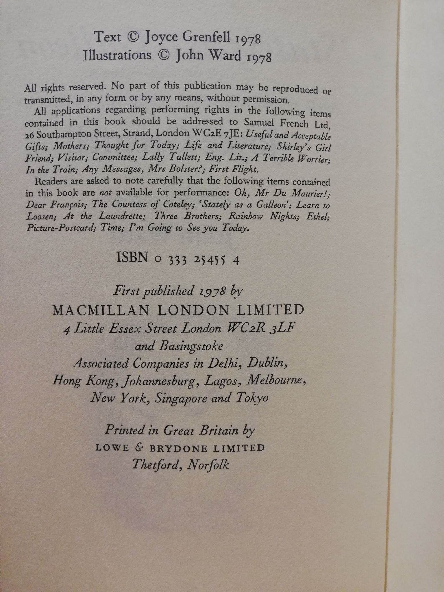 `Stately as a Galleon` - Joyce Grenfell - Illustrated by John Ward - First U.K Edition - First Print - Hardback - Macmillan - 1978