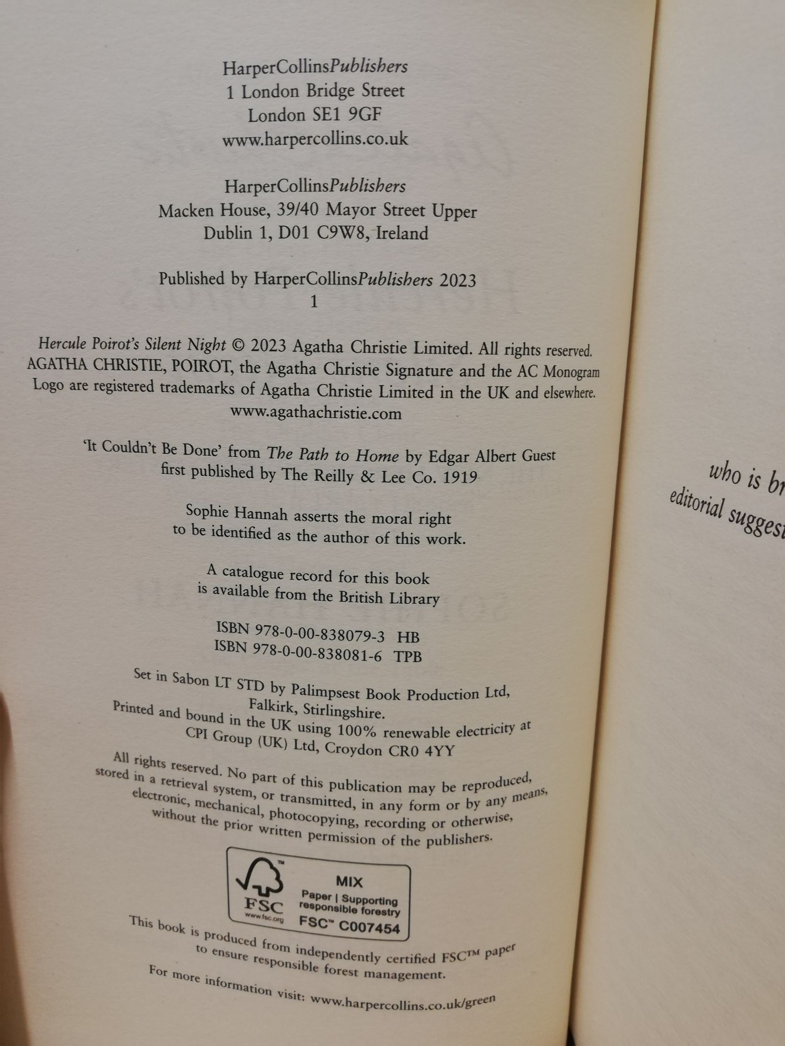 Tags: Hercule Poirot's Silent Night, Sophie Hannah:First U.K Print, Hbk, HarperCollins, 2023
