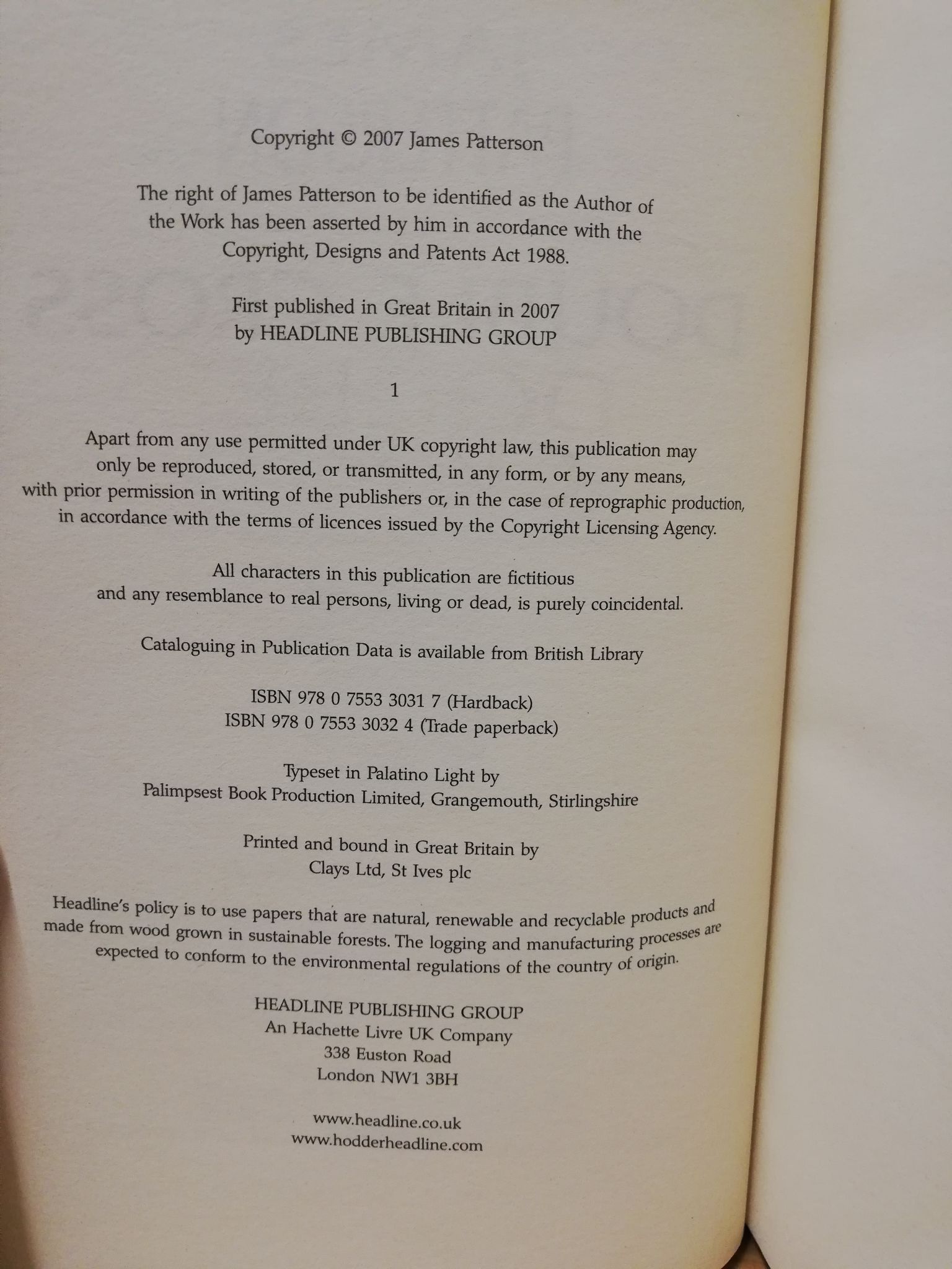 `Double Cross` by James Patterson - First UK Edition - First Print - Hardback - Macmillan - 2007