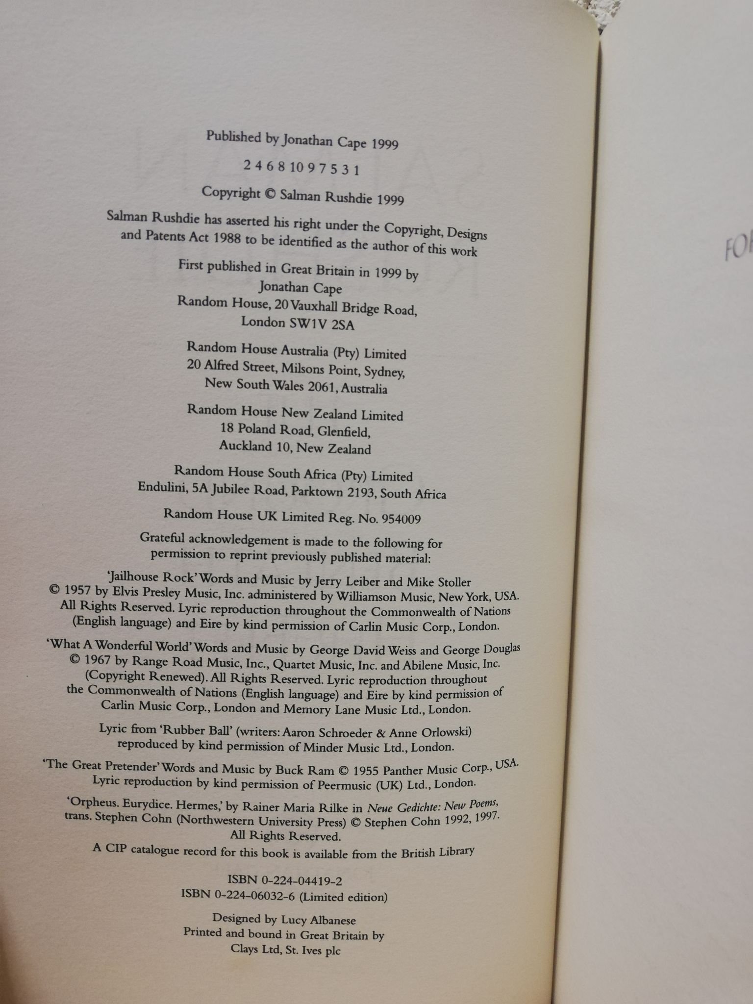 `The Ground Beneath Her Feet` - Salman Rushdie - First U.K Edition - First Print - Hardback - Jonathan Cape - 1999 `The Ground Beneath Her Feet` - Salman Rushdie - First U.K Edition - First Print - Hardback - Jonathan Cape - 1999 `The Ground Beneath Her Feet` - Salman Rushdie - First U.K Edition - First Print - Hardback - Jonathan Cape - 1999 `The Ground Beneath Her Feet` - Salman Rushdie - First U.K Edition - First Print - Hardback - Jonathan Cape - 1999 `The Ground Beneath Her Feet` - Salman Rushdie - First U.K Edition - First Print - Hardback - Jonathan Cape - 1999 `The Ground Beneath Her Feet` - Salman Rushdie - First U.K Edition - First Print - Hardback - Jonathan Cape - 1999