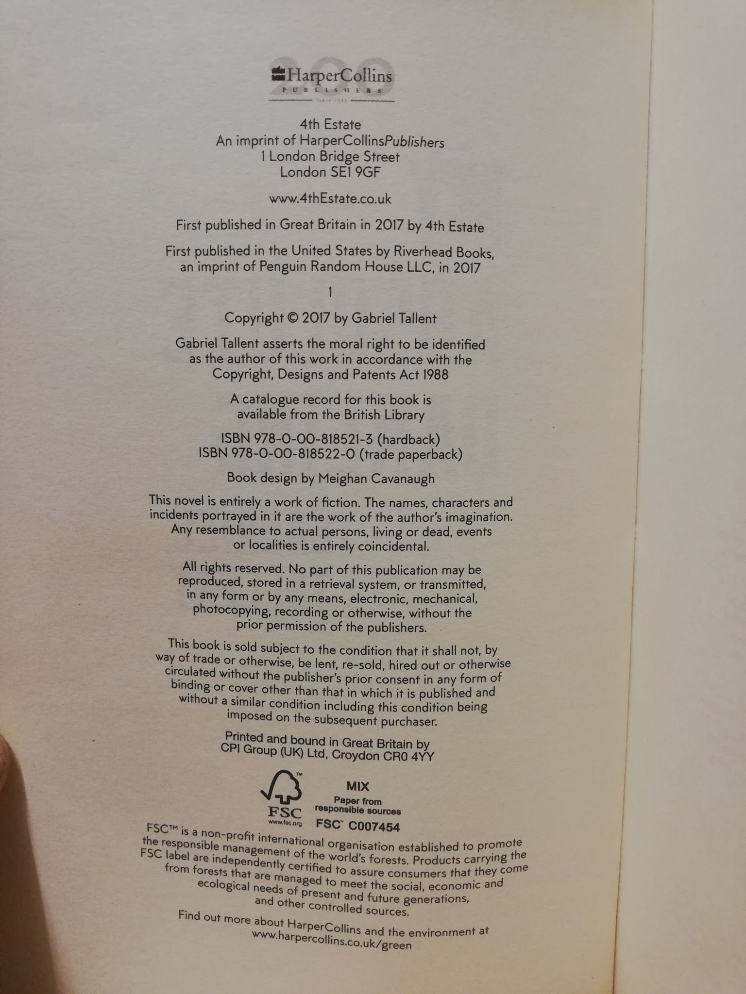 Tags: My Absolute Darling, Gabriel Tallent, 1st UK Edition, 1st Print, Hbk, Fourth Estate, 2017