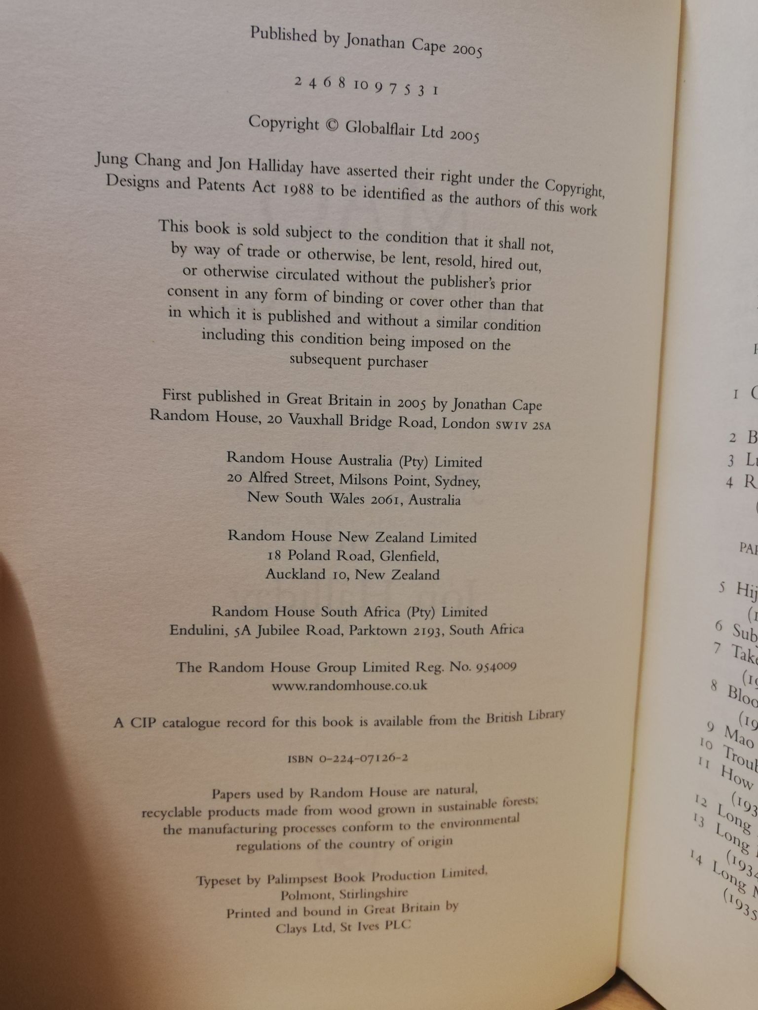 Tags: Mao:The Unknown Story, Jung Chang, Jon Halliday:First U.K Print, Hbk, Jonathan Cape, 2005