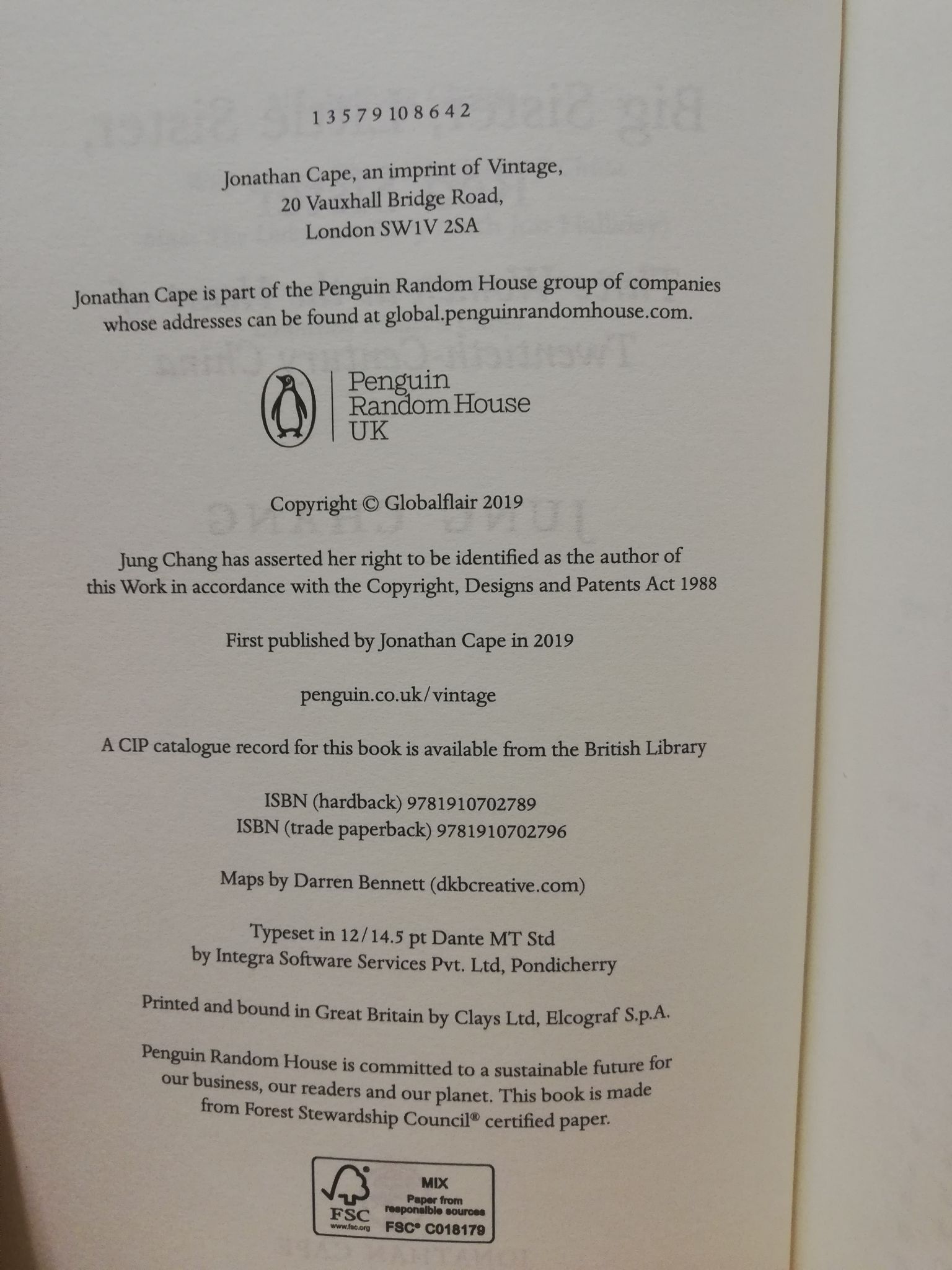 Tags: Big Sister, Little Sister, Red Sister, Heart of Twentieth-Century China, Jung Chang, 1st UK Edition, 1st Print, Hbk, Jonathan Cape, 2019
