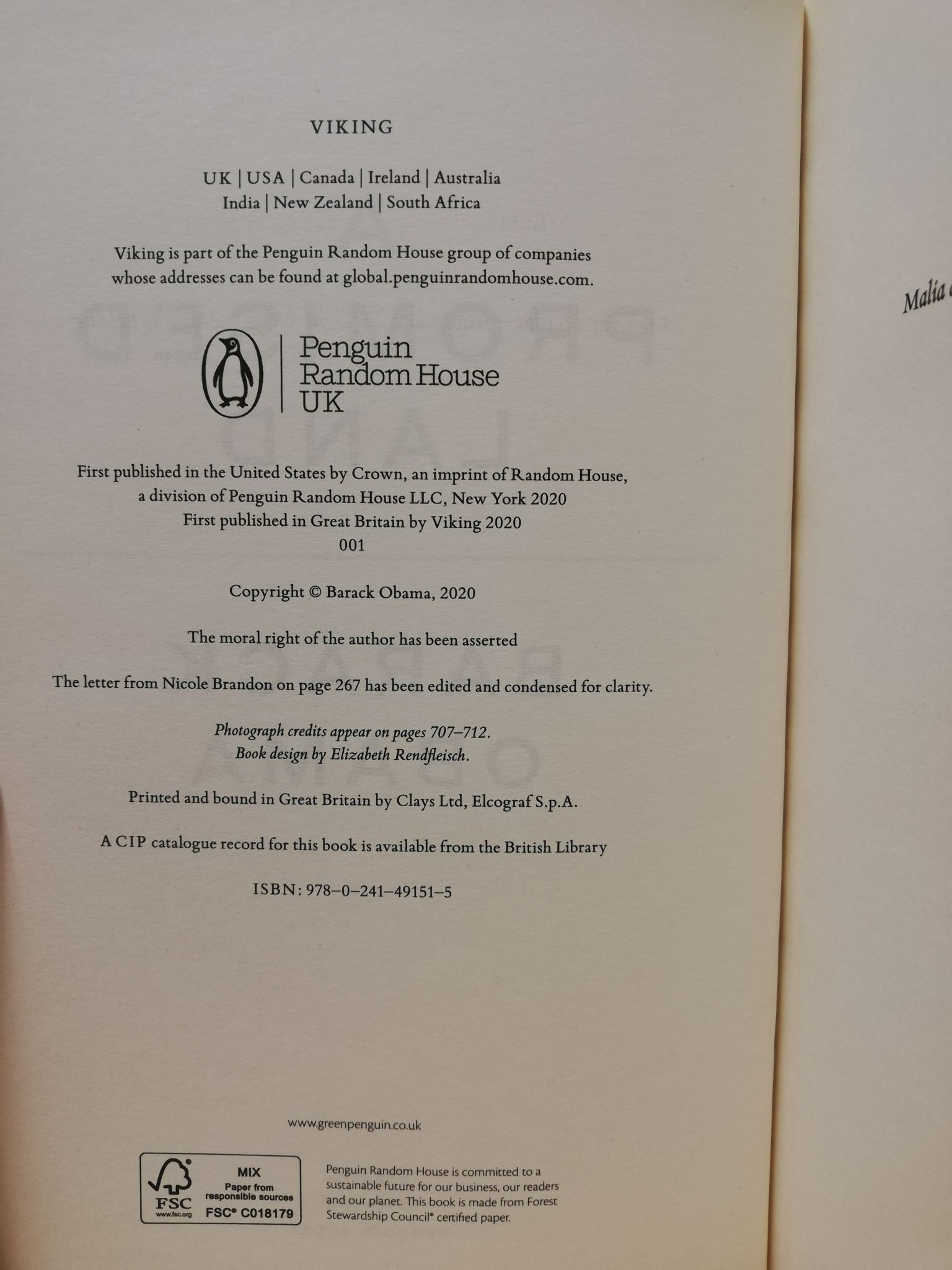 Tags: A Promised Land, Barack Obama, 1st UK Edition, 1st Print, Hbk, Viking, 2020