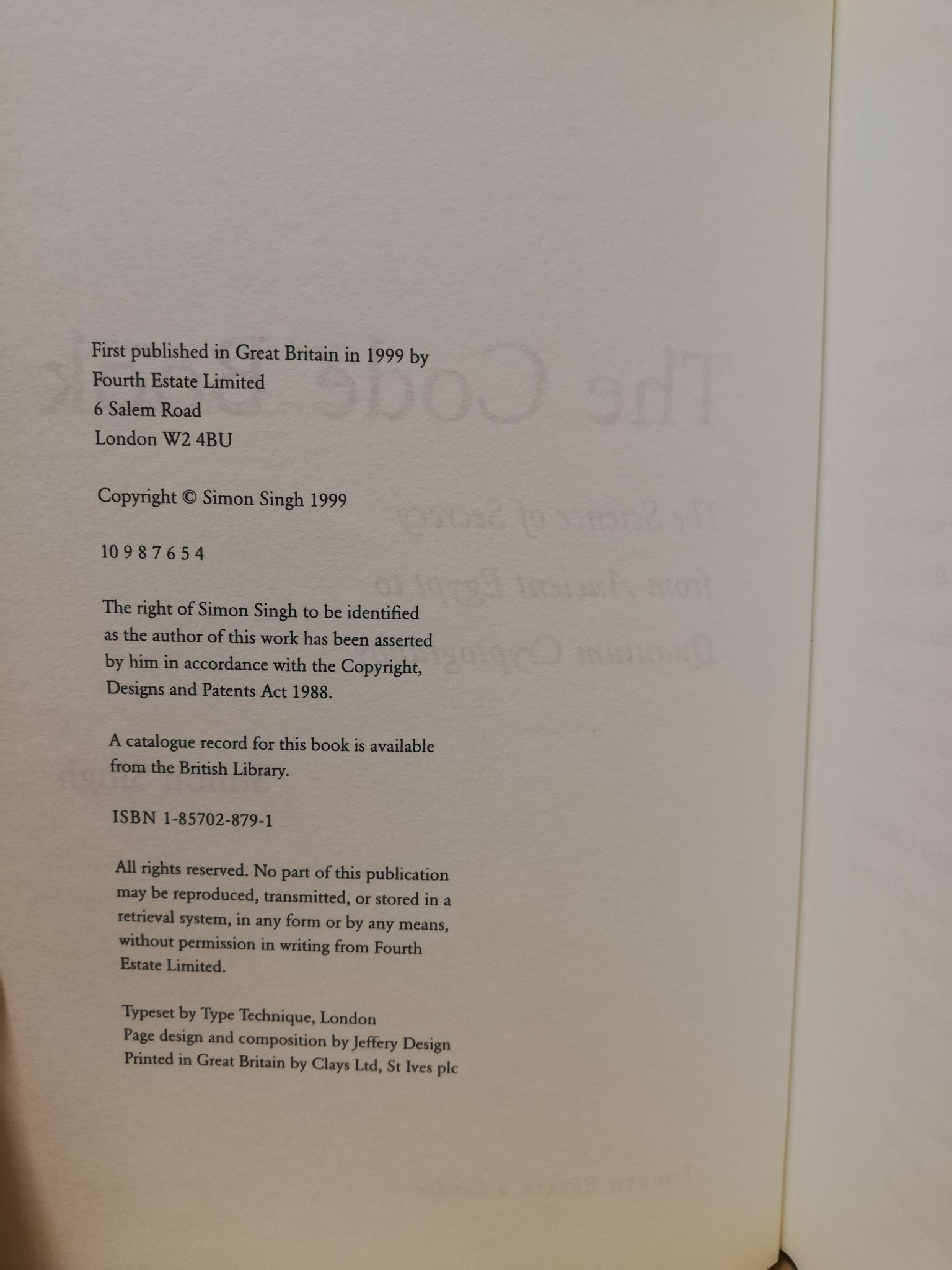 `The Code Book` - Simon Singh - Hardback with Dust Jacket - HarperCollins - 1999