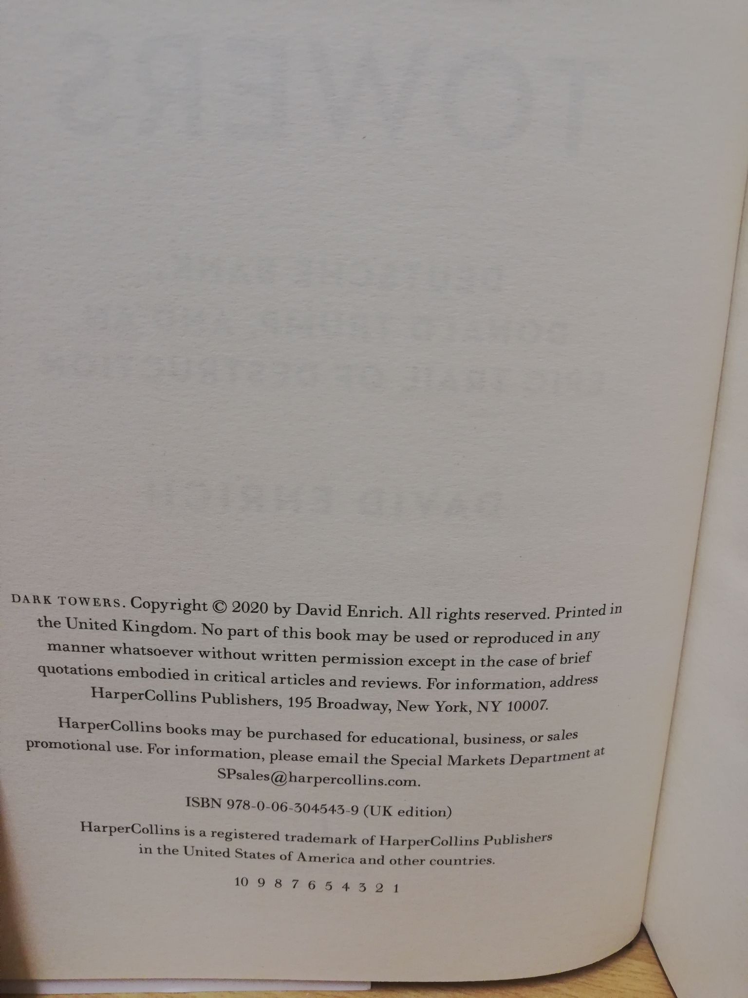 Tags: Dark Towers, Deutsche Bank.., David Enrich, 1st U.K/U.S/Can Edition, 1st Print, Hbk, HarperCollins, 2020