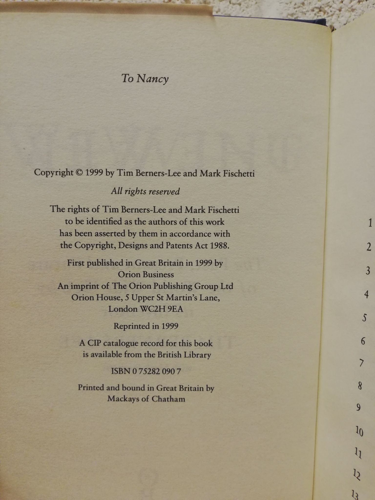 `Weaving the Web` - Tim Berners-Lee - UK 1st Printing - Hardback - Orion Business - 1999