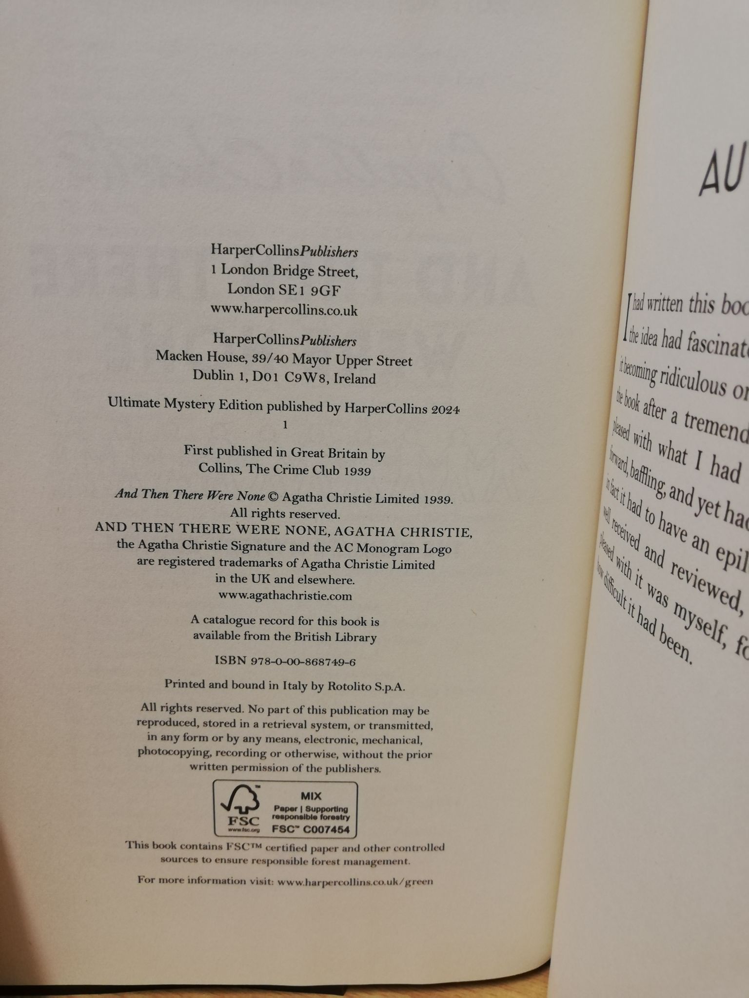 `And Then There Were None` - Agatha Christie - Ultimate Mystery Edition - First Print - Hardback - HarperCollins - 2024