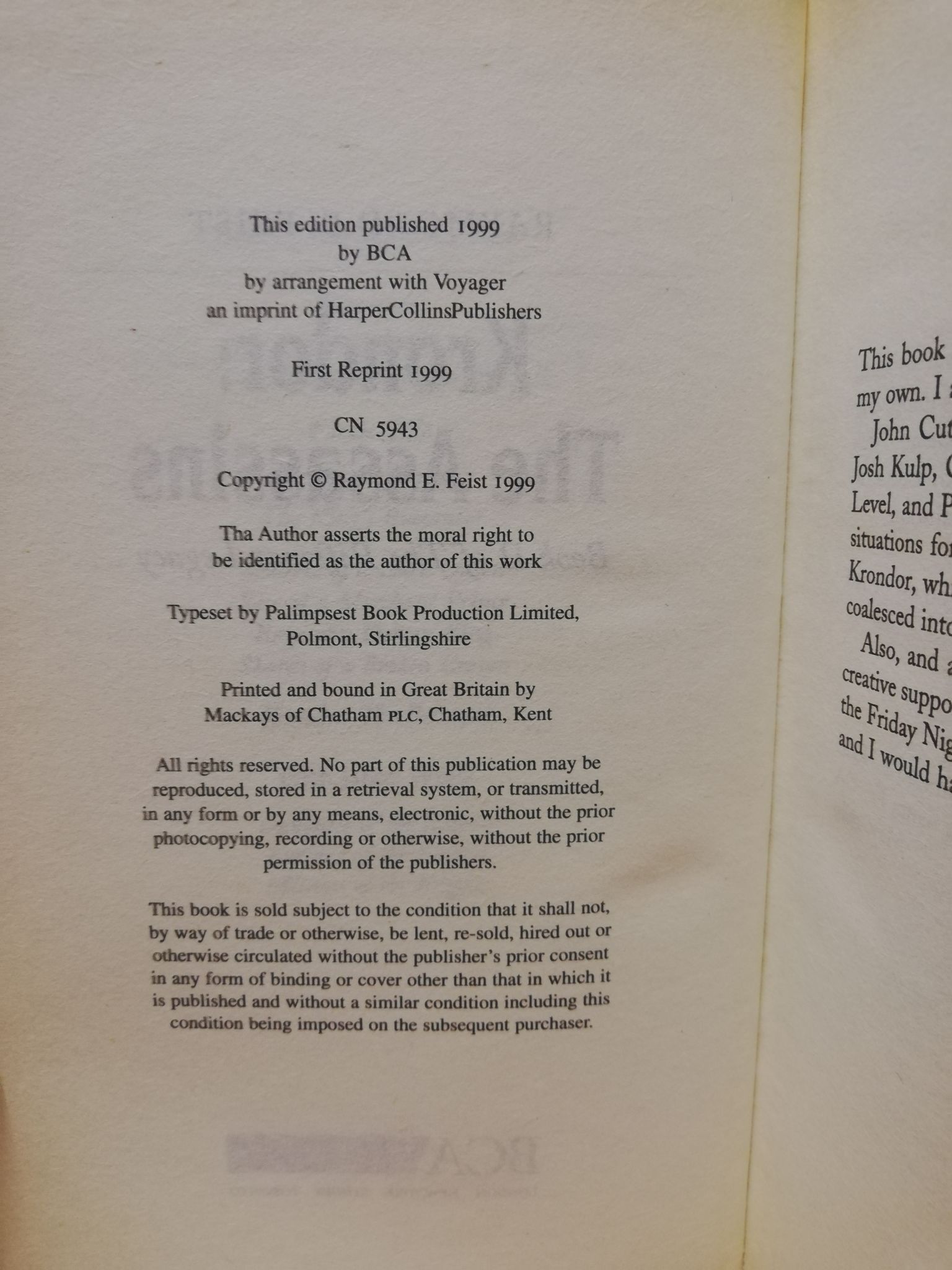 `Krondor The Assassins` - Raymond E. Feist - Hardback with Dust Jacket - BCA (Book Club) - 1999 - CN5943
