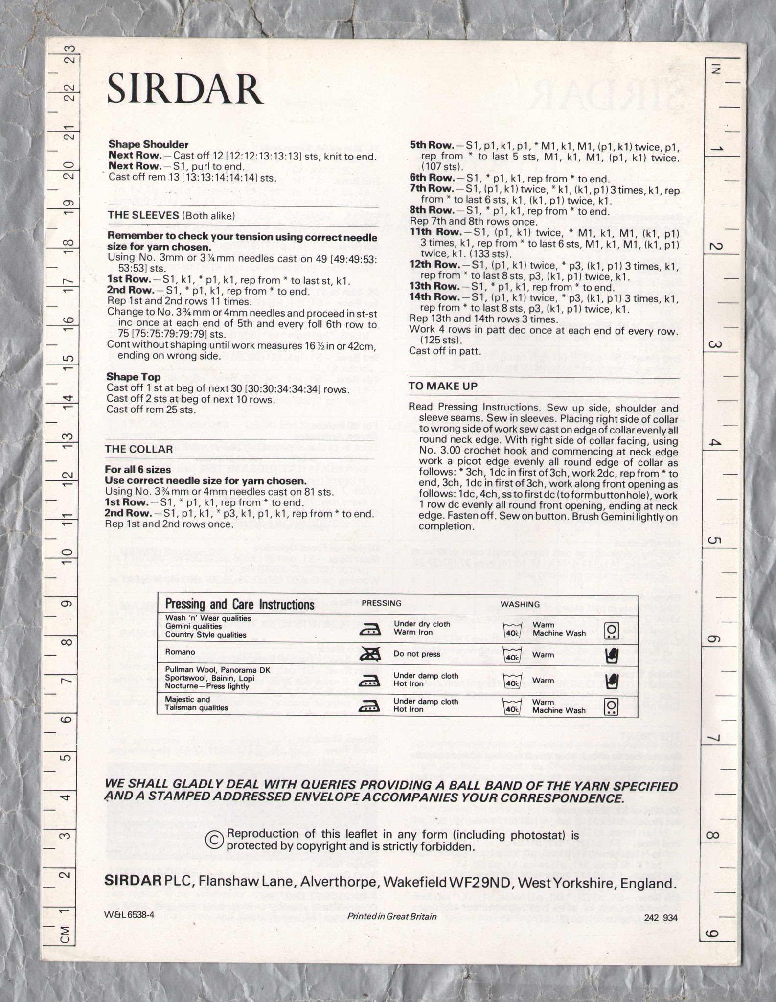 Tags: Sirdar, Gemini, Double, Knit, Bust Sizes, Design No.6538, Sweater, Knitting Pattern