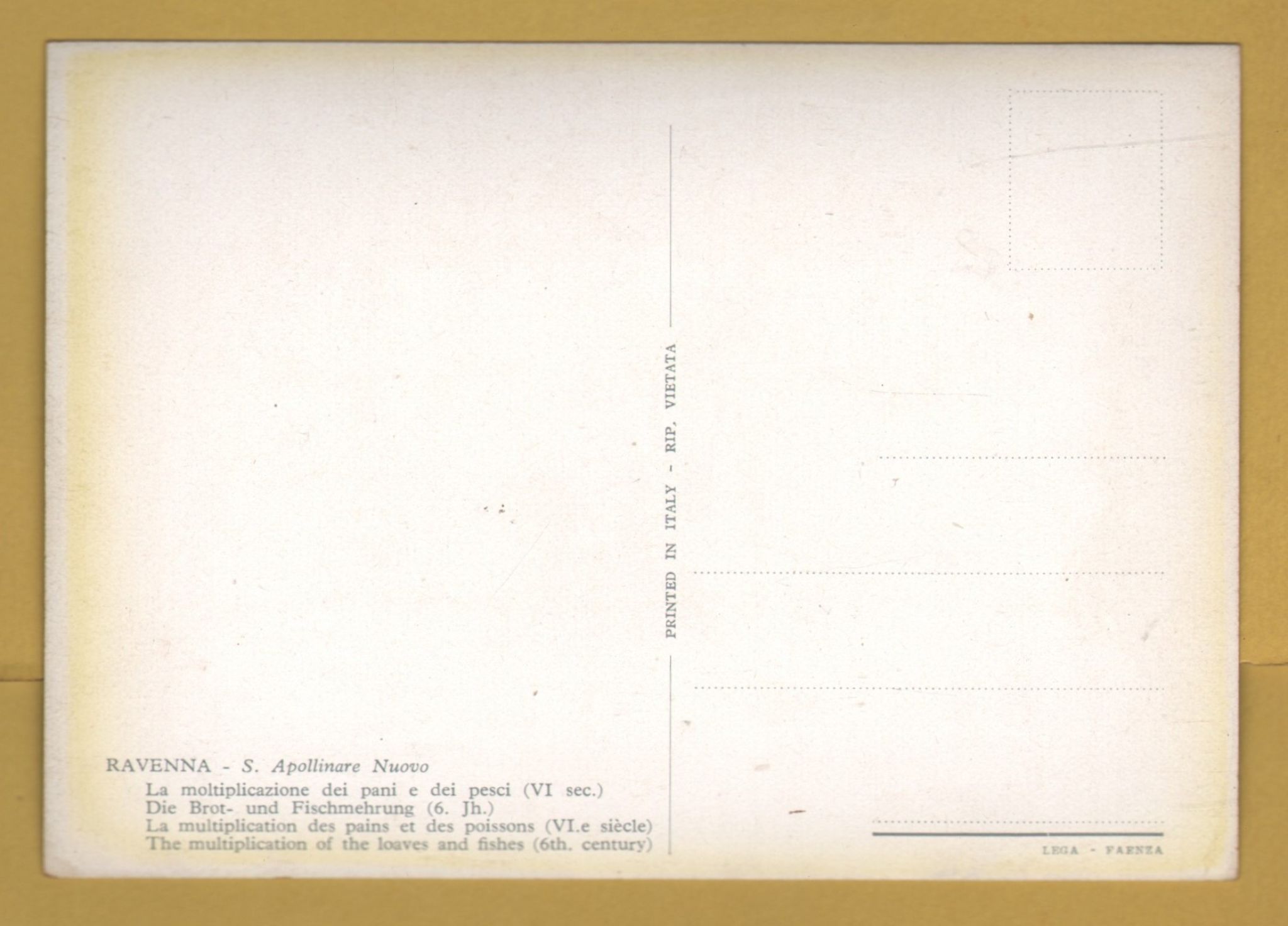 `Ravenna - S.Apollinare Nuovo - The Multiplication of the Loaves and Fishes` - Postally Unused - Unknown Producer `Ravenna - S.Apollinare Nuovo - The Multiplication of the Loaves and Fishes` - Postally Unused - Unknown Producer