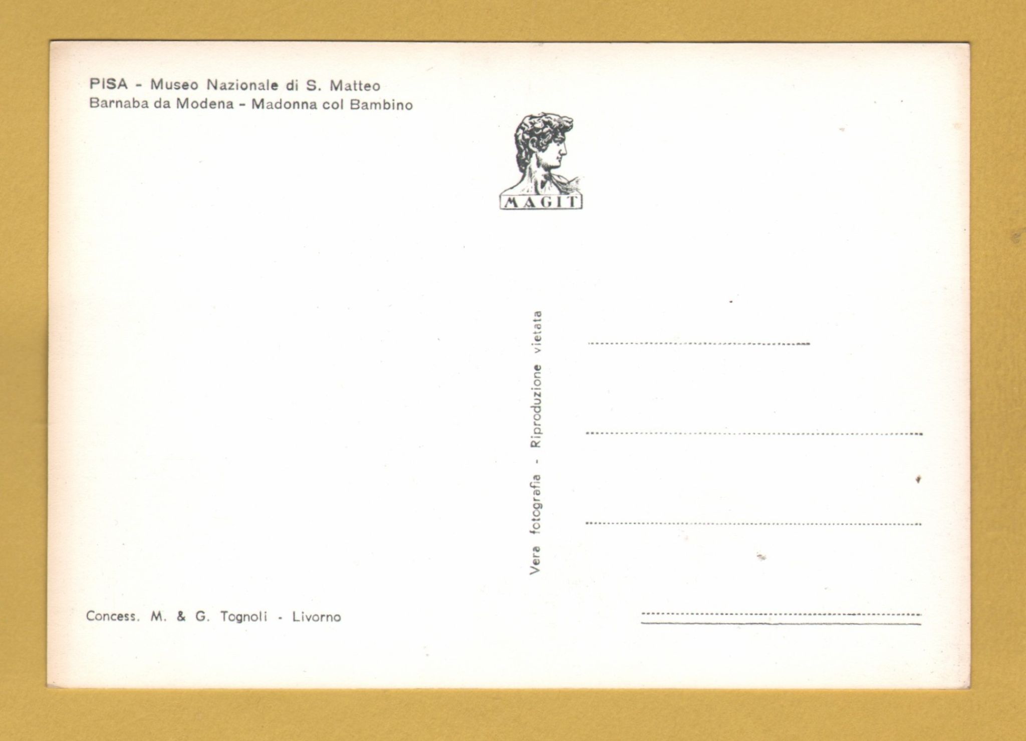 `Pisa, National Museum of St Barnabas of Modena - Madonna and Child` - Postally Unused - Magit Postcard.
