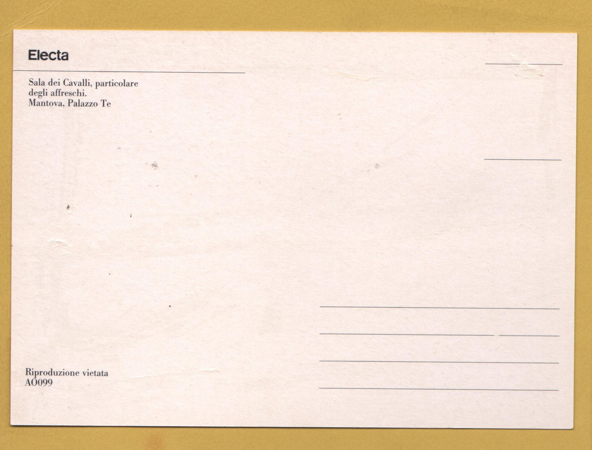 `Morel Favorito by Giulio Romano from the Hall of Horses (Sala dei Cavalli)` - Postally Unused - Electa Postcard. `Morel Favorito by Giulio Romano from the Hall of Horses (Sala dei Cavalli)` - Postally Unused - Electa Postcard.