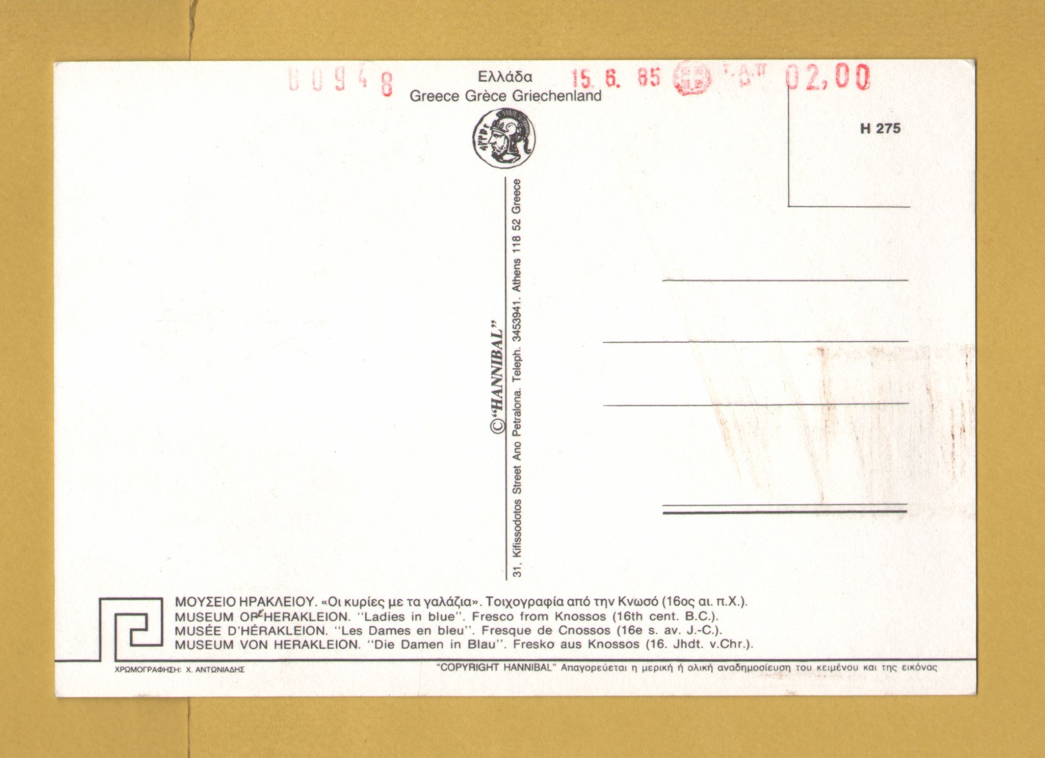 Tags: Heraklion Museum, Ladies in Blue, Fresco, Knossos:Unused, Hannibal Postcard.