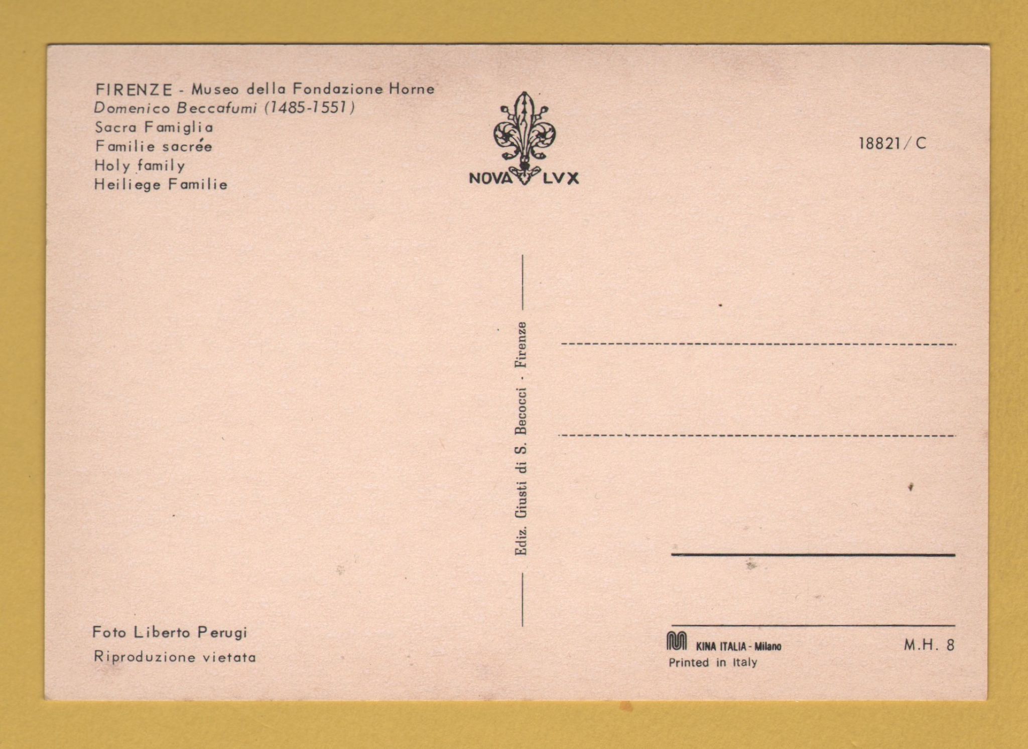 Tags: Florence, Horne Foundation Museum, Holy Family, Domenico Beccafumi:Unused, Nova LVX Postcard.